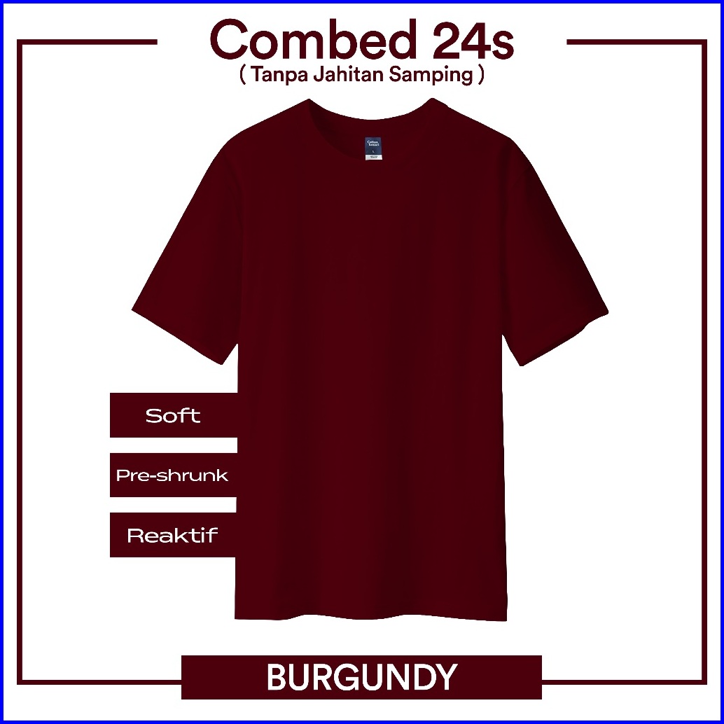 Kaos Basic - Burgundy Cotton Combed Built Up 24s Kaos Polos Pria Wanita Tanpa Jahit Samping
