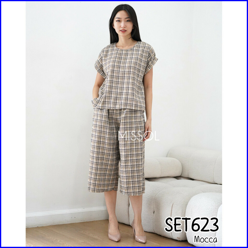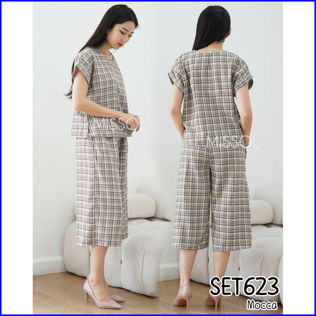 Missol Setelan Tweed Korea Lengan Pendek Terbaru Basic Set623
