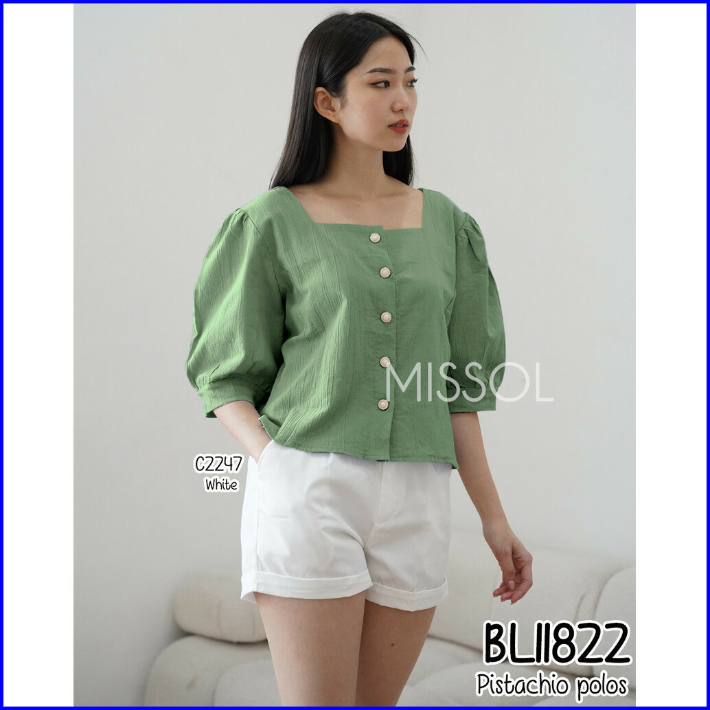 Missol Atasan Linen Wanita Polos Lengan Balon Korean Style Bl11822 11822