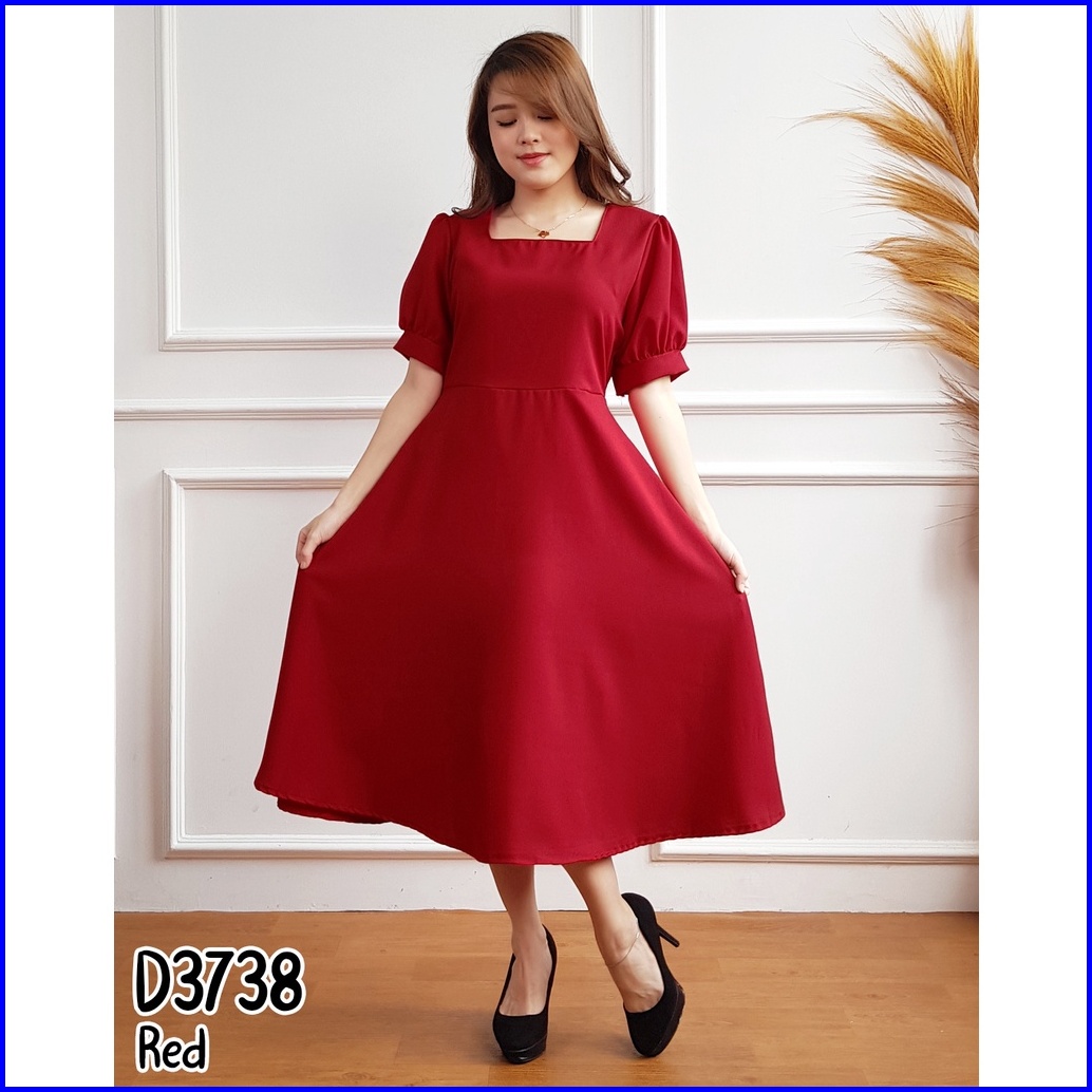 Missol Dress Xl Xxl Midi Polos Lengan Pendek D3738