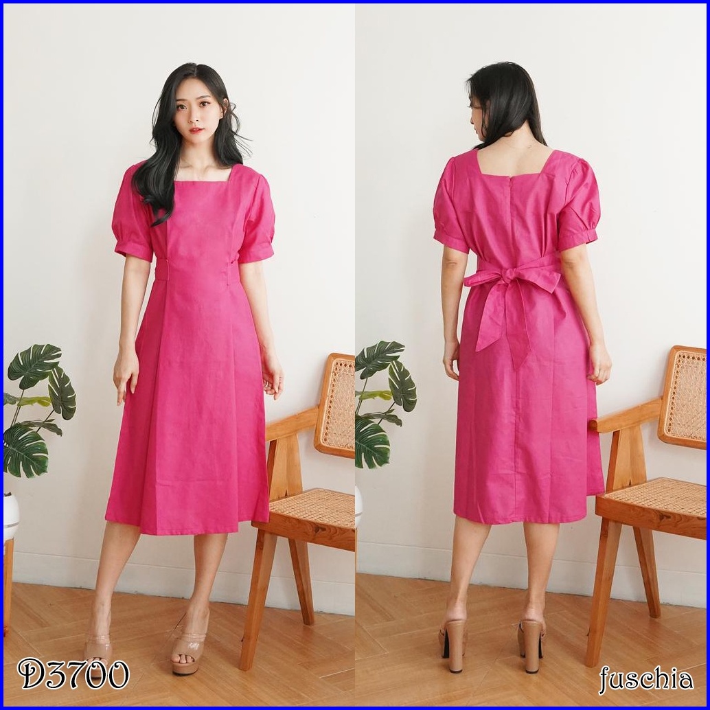 Missol Dress Korean Style Midi Lengan Pendek Casual Fuschia 3700 D3700