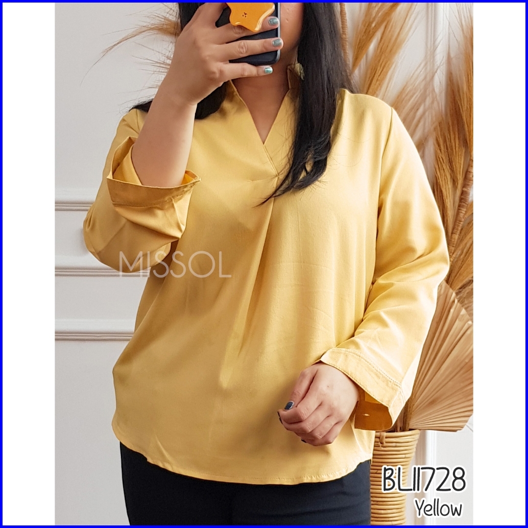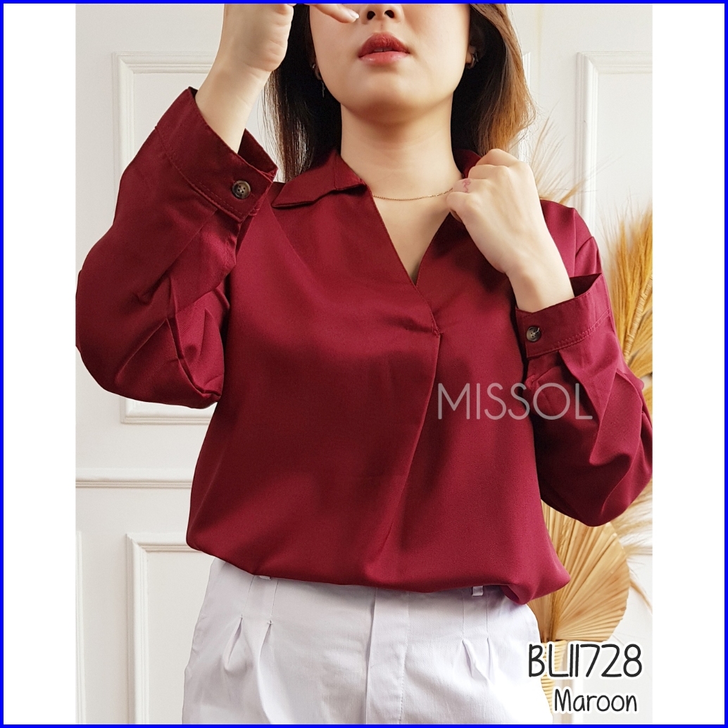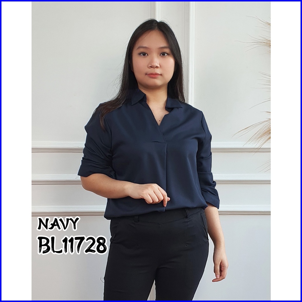 Bl11728 Atasan Casual Wanita Polos Lengan Panjang Baju Kantoran Blouse Kerja Presenter Tvone 11728