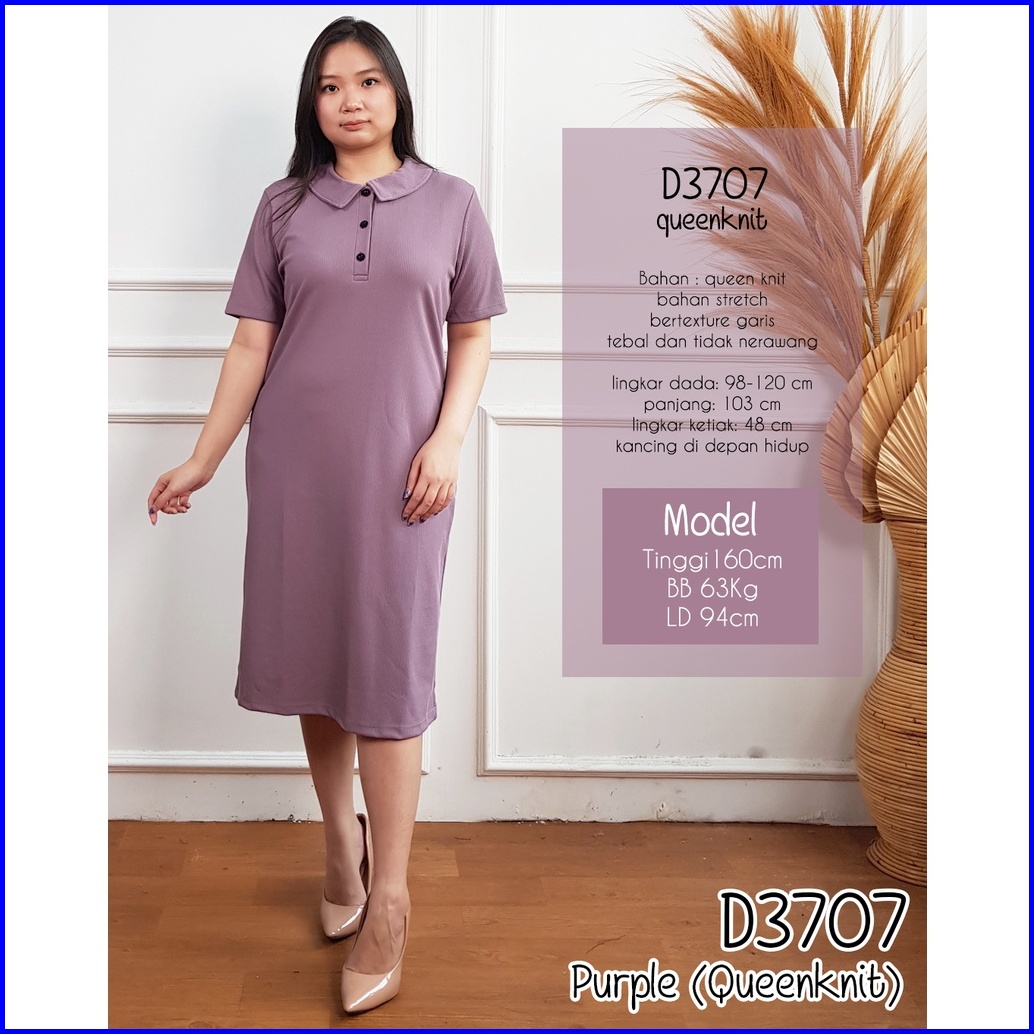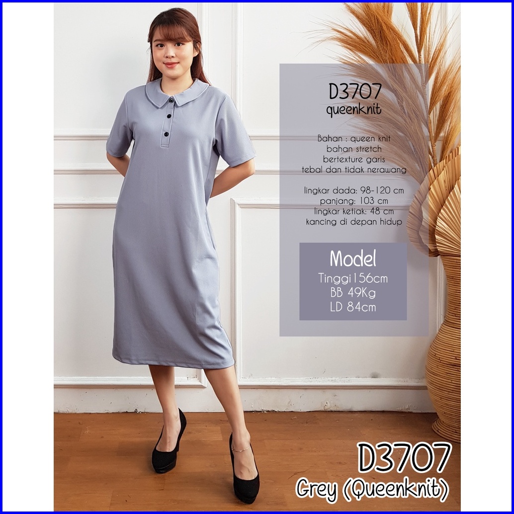D3707 Dress Kerah Wanita Midi Polos Lengan Pendek Knit 3707