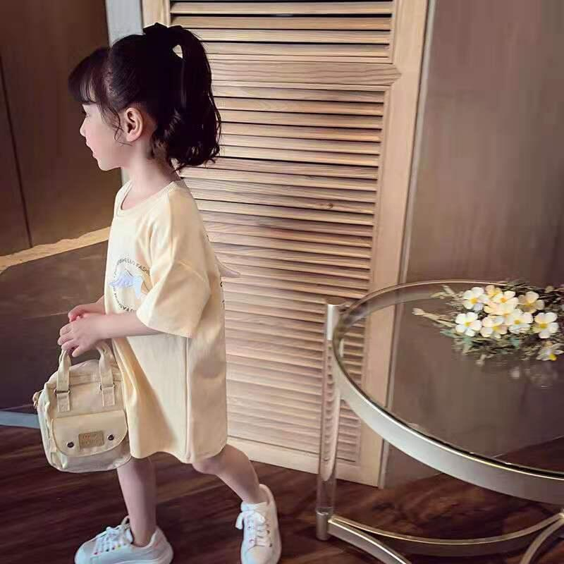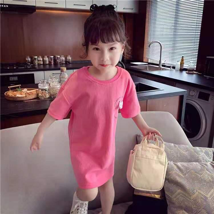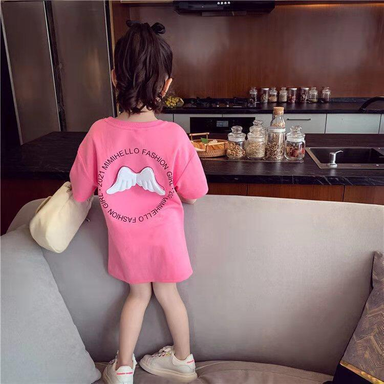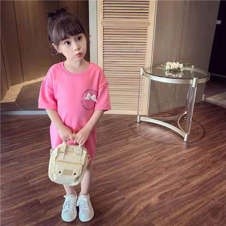 Dress Angle Sayap Mid-Length Korea Style Baju Katun Pink Lembut Nyaman