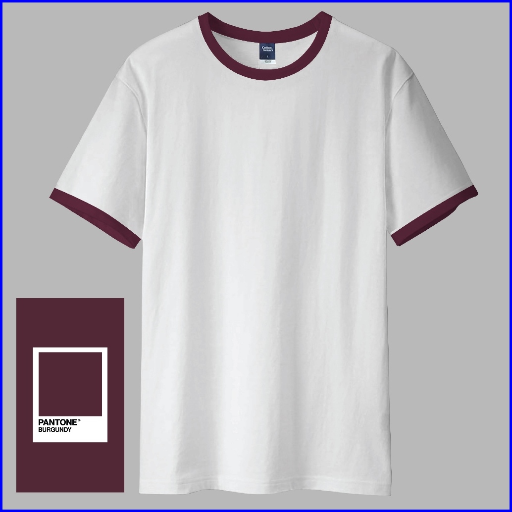 Kaos Ringer Tee - Maroon Burgundy White Kaos Polos Ringer Tee - Combed 30s Supersoft