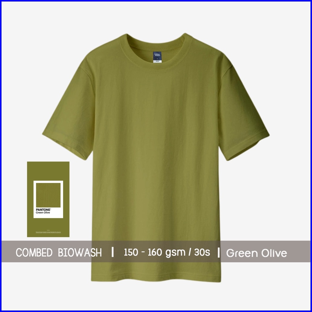 Kaos Basic Biowash - Green Olive Combed Biowash 30s Kaos Polos Ultra Soft