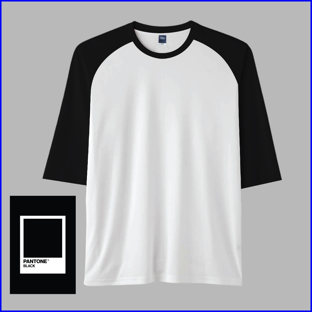 Raglan Basic Super Black White - Cotton Kenari Kaos Polos Raglan Cowo Cewe Lengan Tiga Perempat