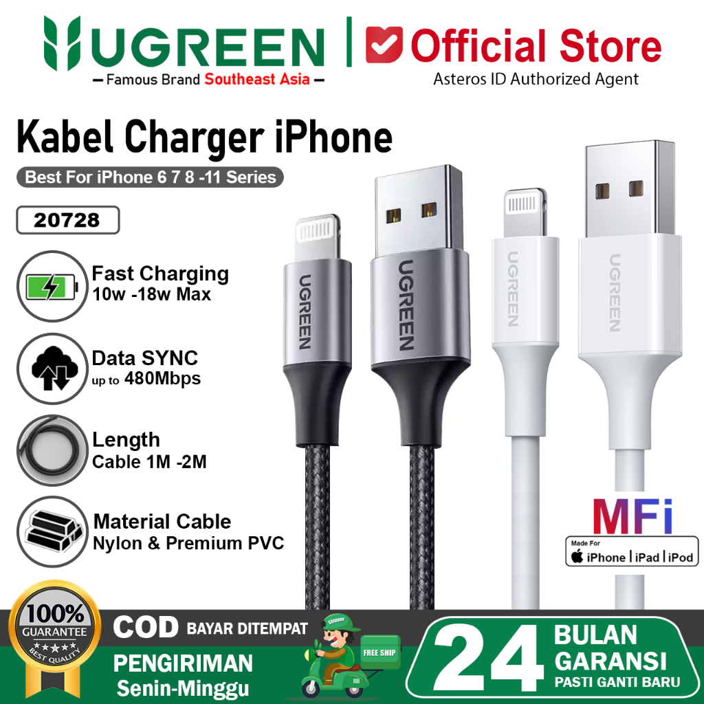 Charger Iphone UGREEN Kabel Data MFI iPhone 5 6 7 8 X Xr Xs USB lightning Fast Charging 10w 18w