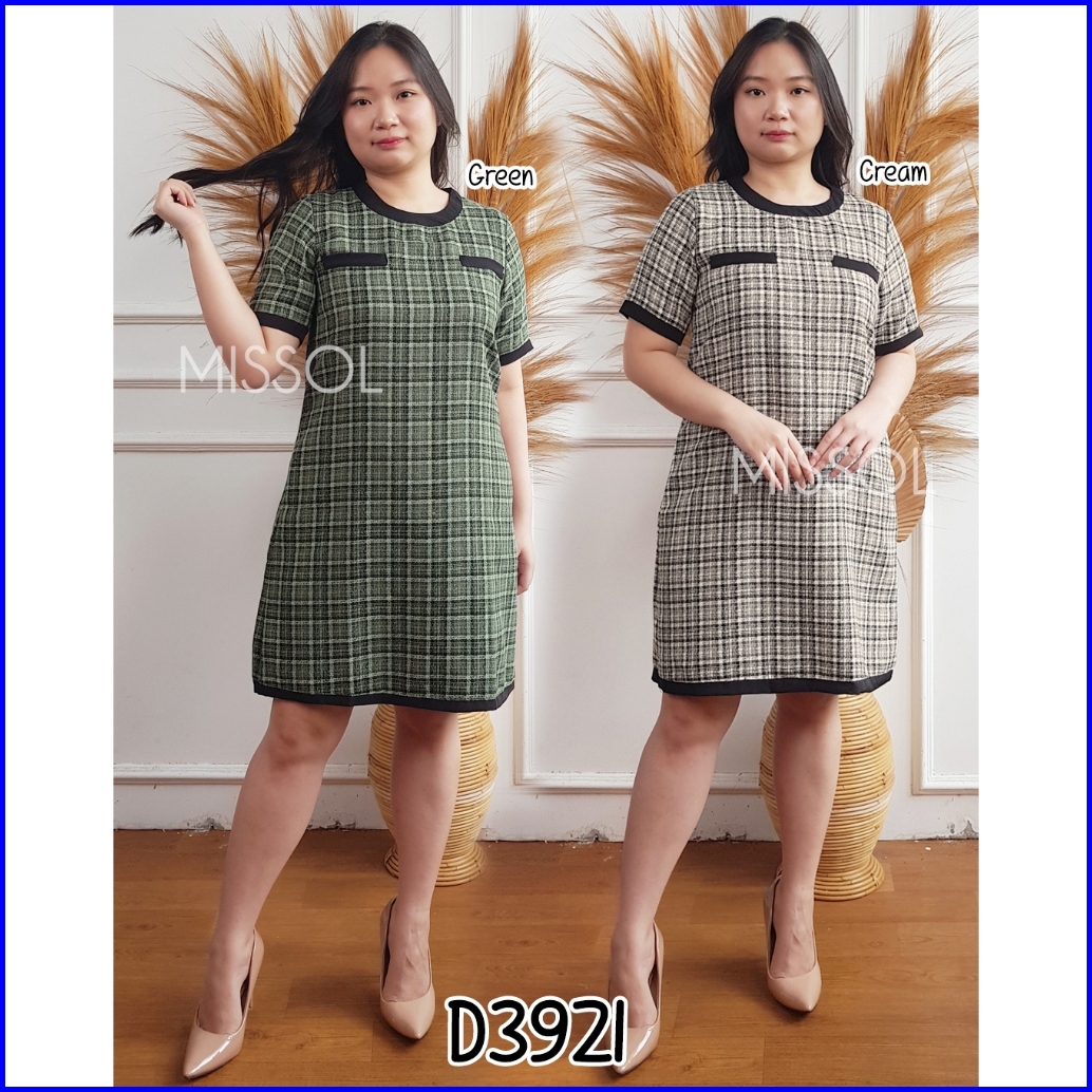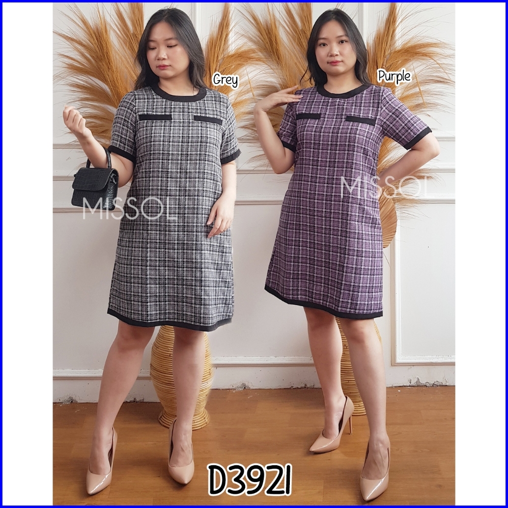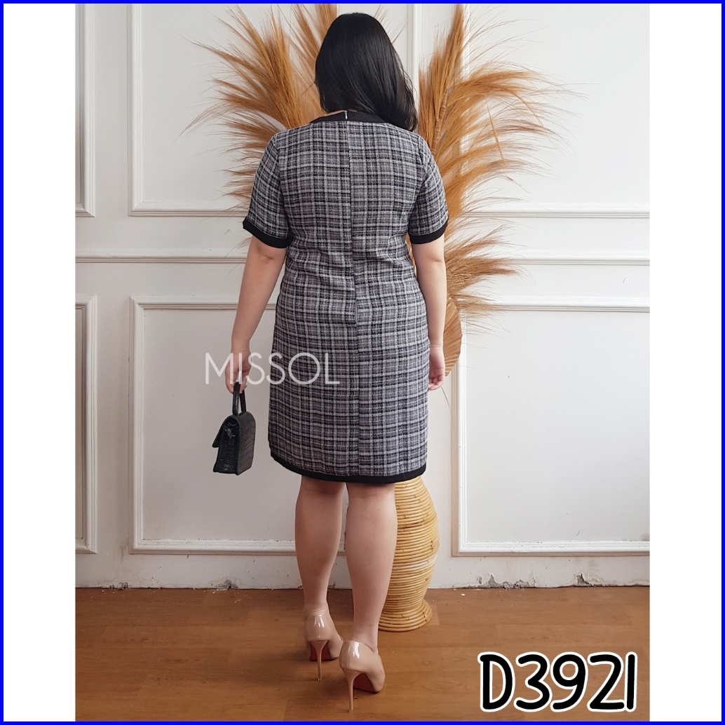 Missol Dress Midi Tweed Lengan Pendek Casual D3921