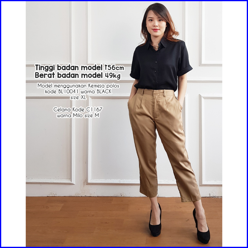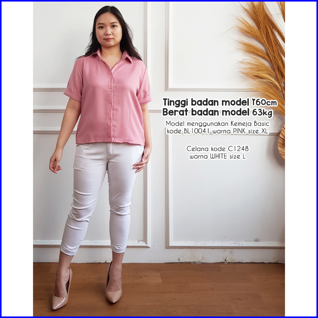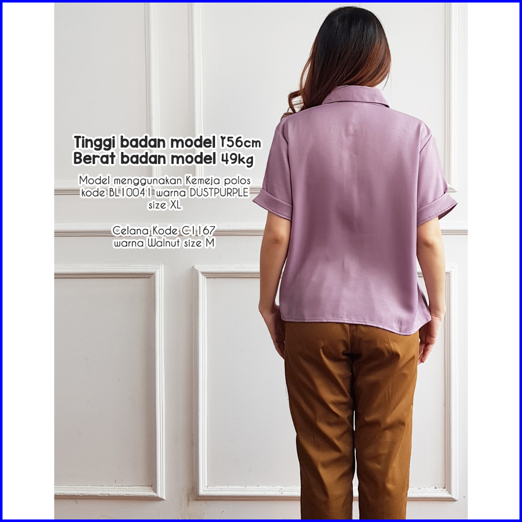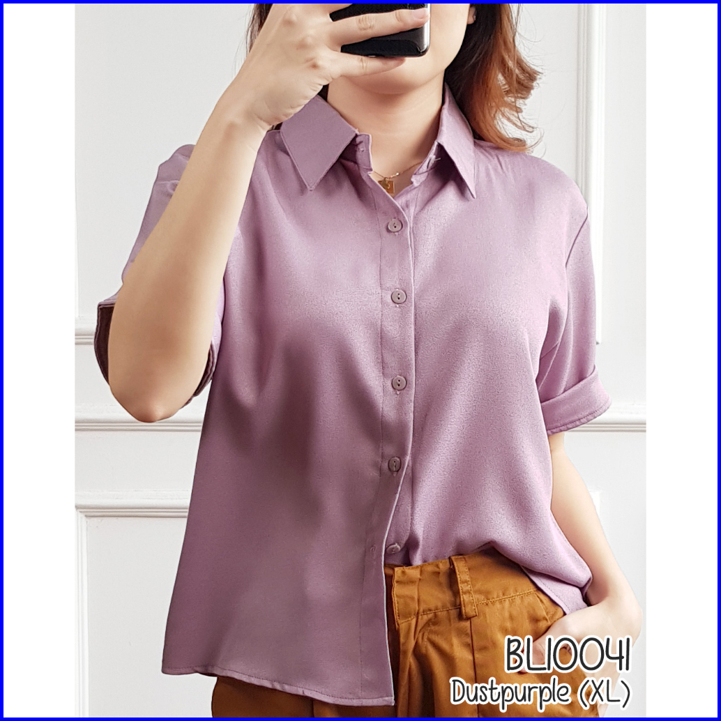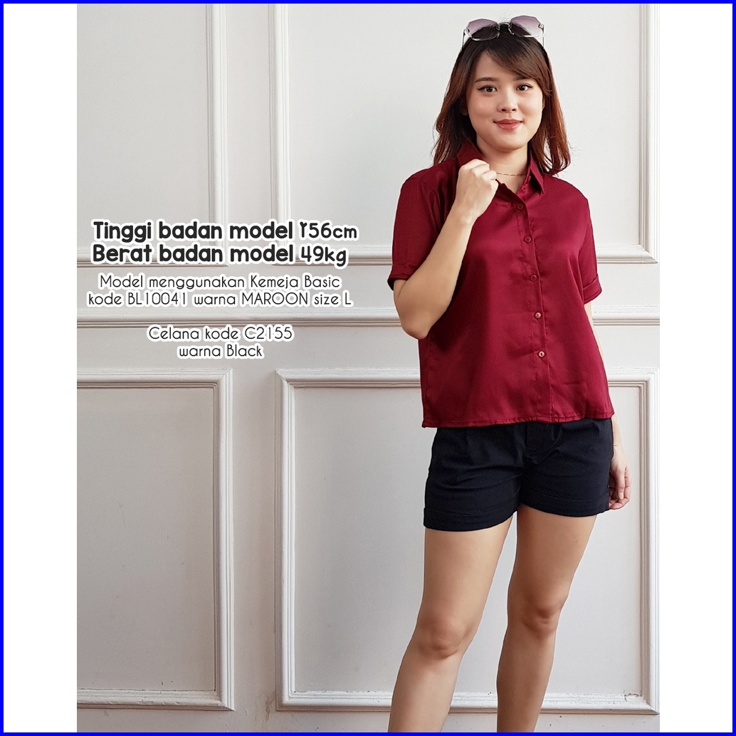 Kemeja Lengan Pendek Wanita Bl10041 Kemeja Polos Basic 10041