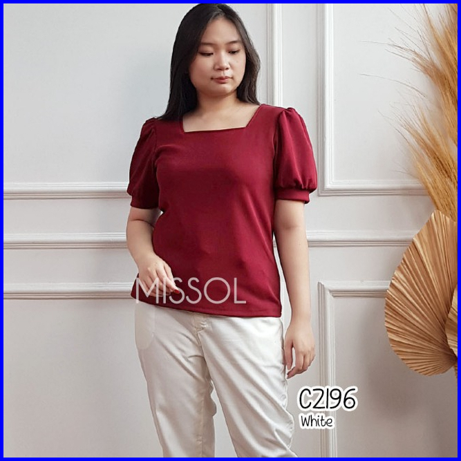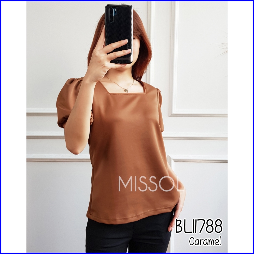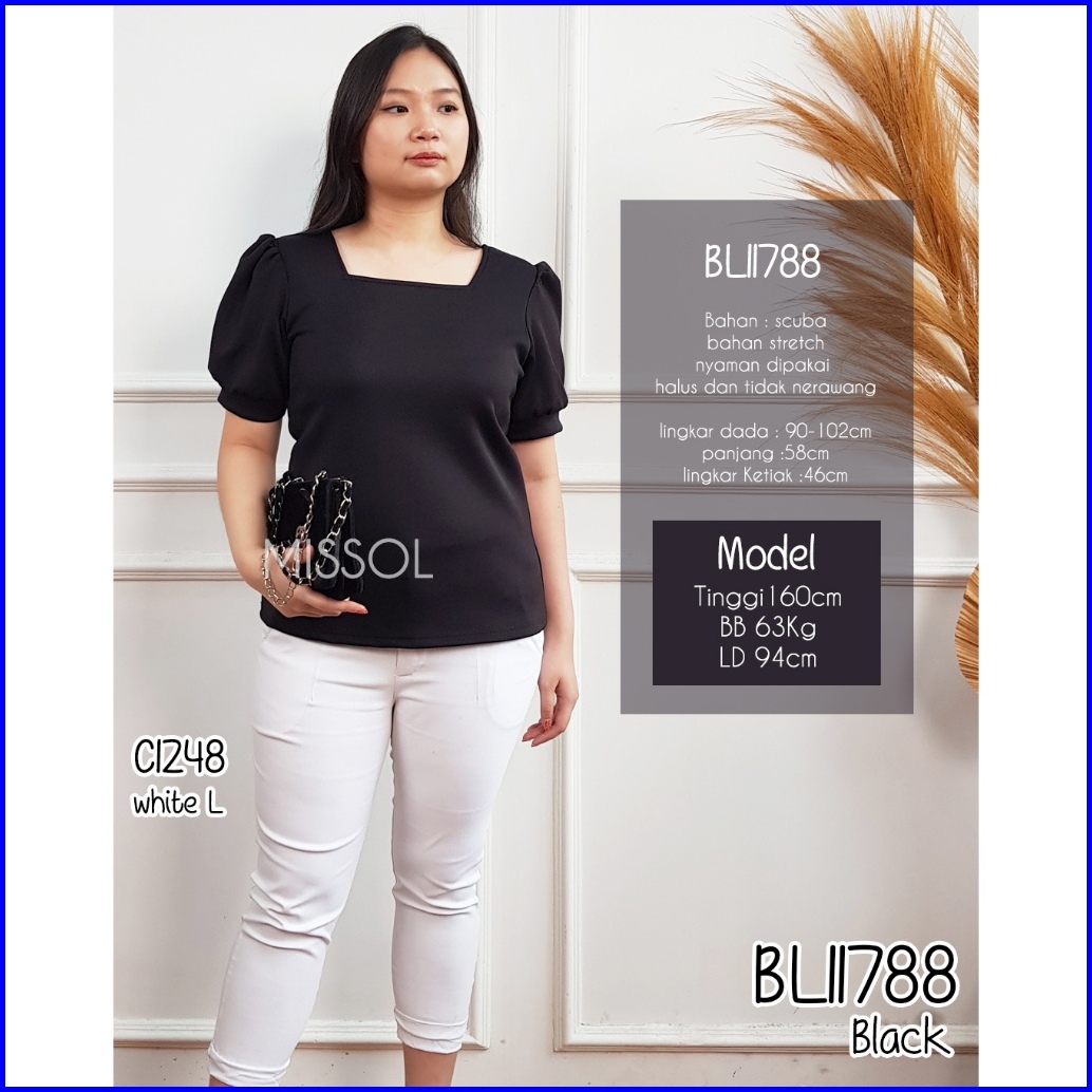 Bl11788 Blouse Wanita Scuba Tangan Pendek Motif Polos Casual 11788