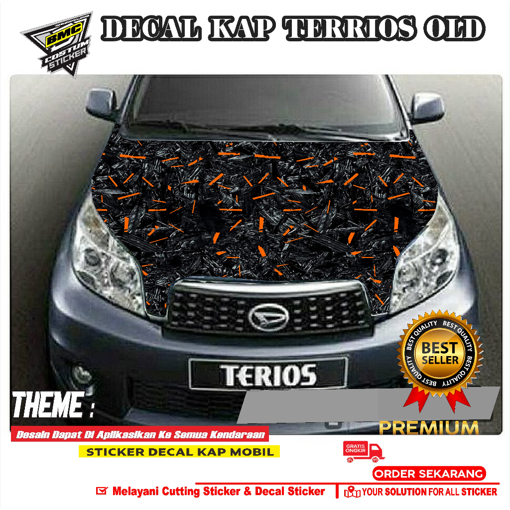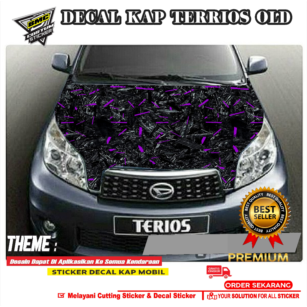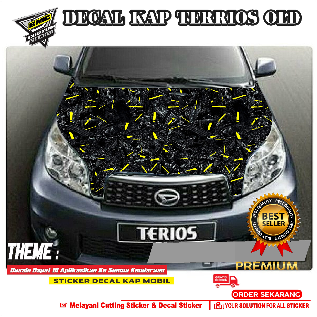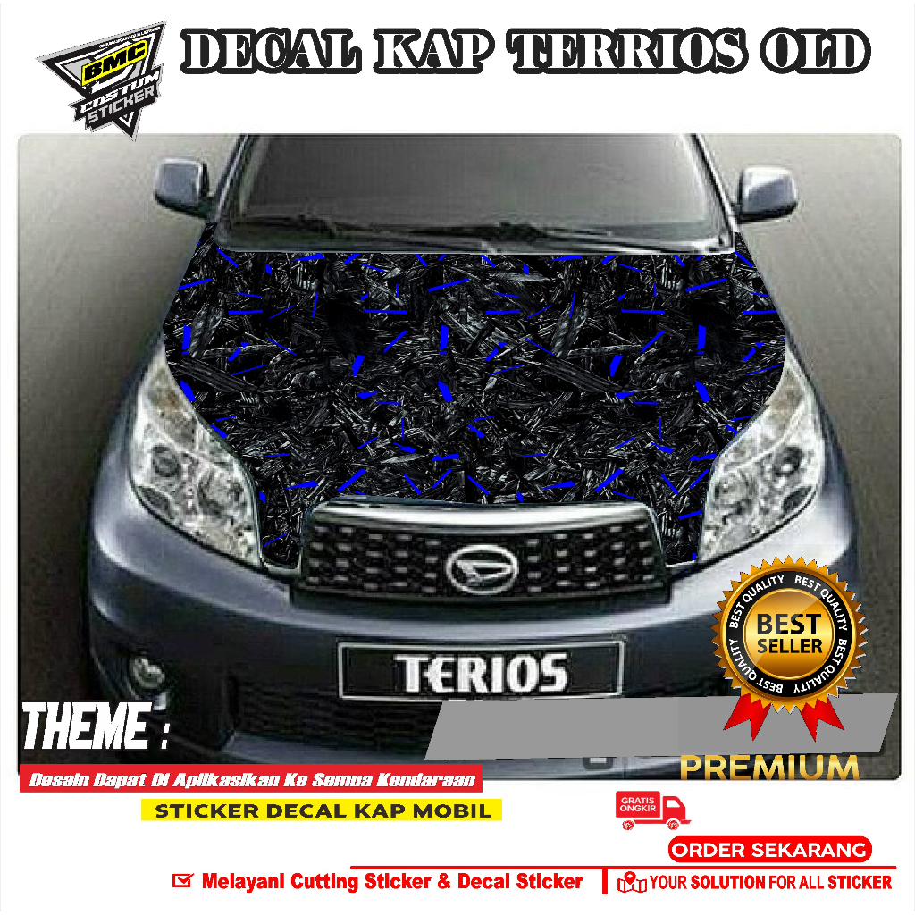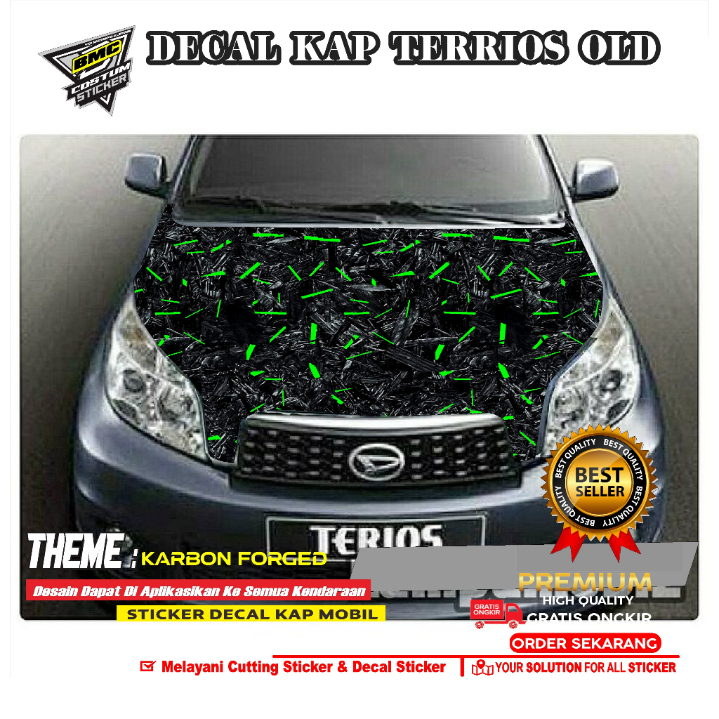STICKER DECAL KAP MESIN MOBIL TERRIOS/STIKER VARIASI KAP MESIN ESAIN KARBON FORGED
