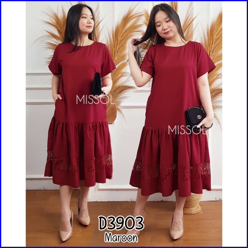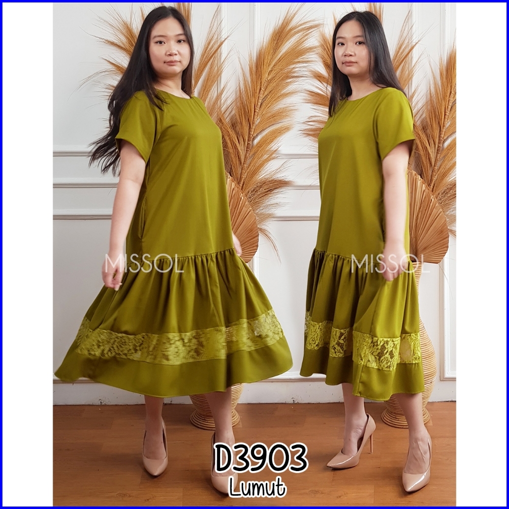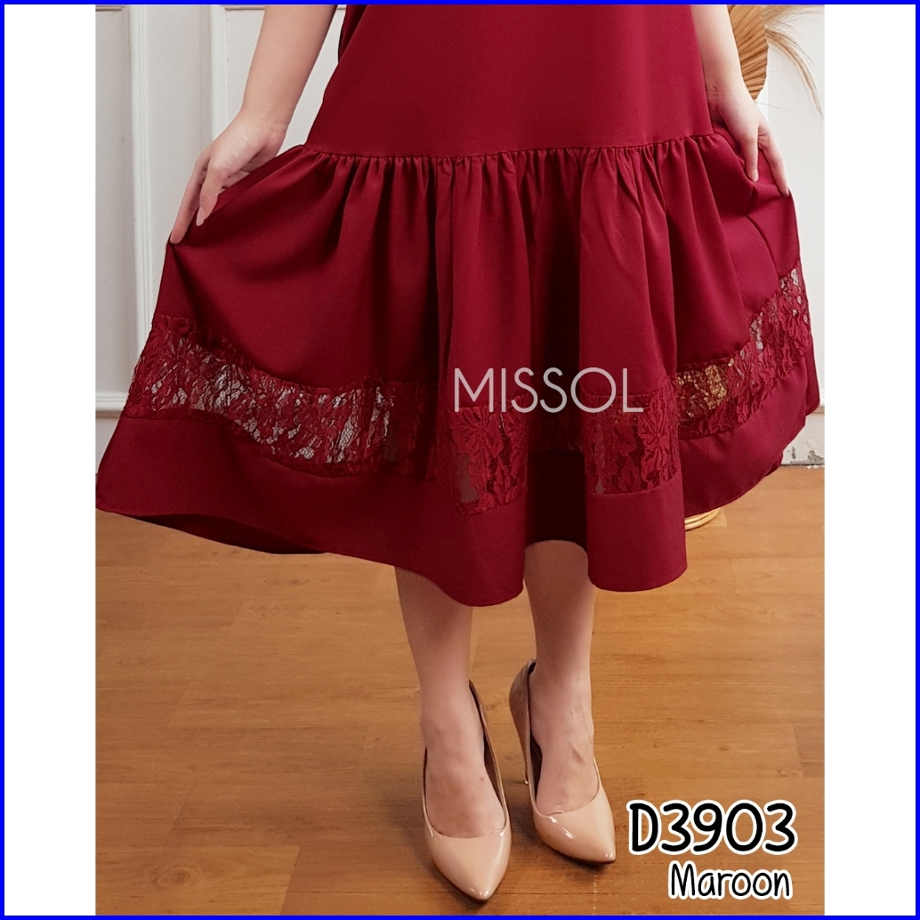 Missol Dress Midi Polos Kombi Brukat Lengan Pendek Casual D3903