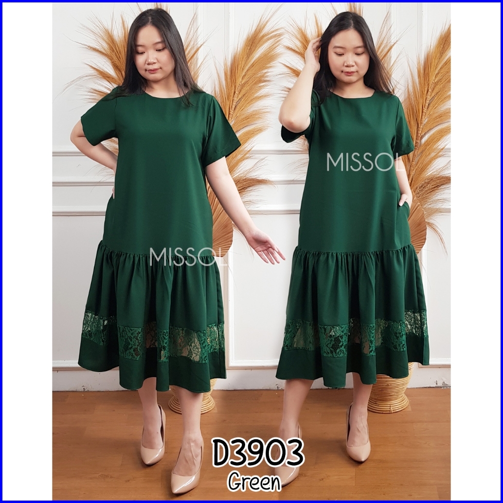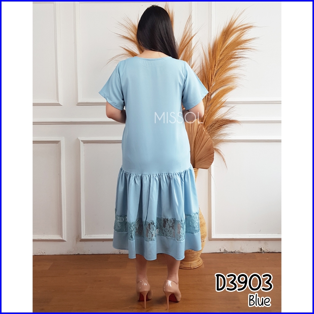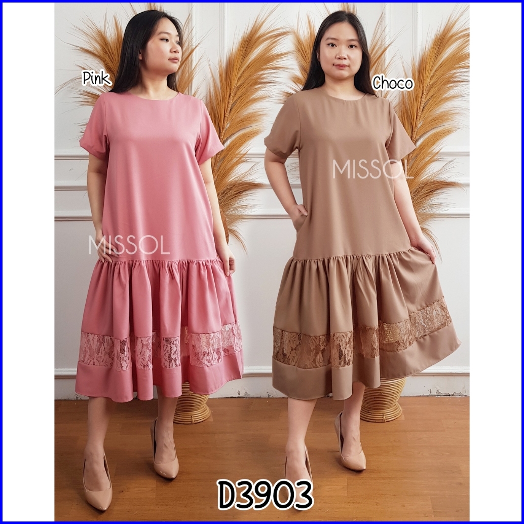 Missol Dress Midi Polos Kombi Brukat Lengan Pendek Casual D3903