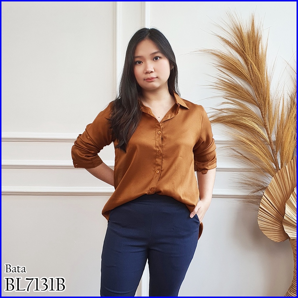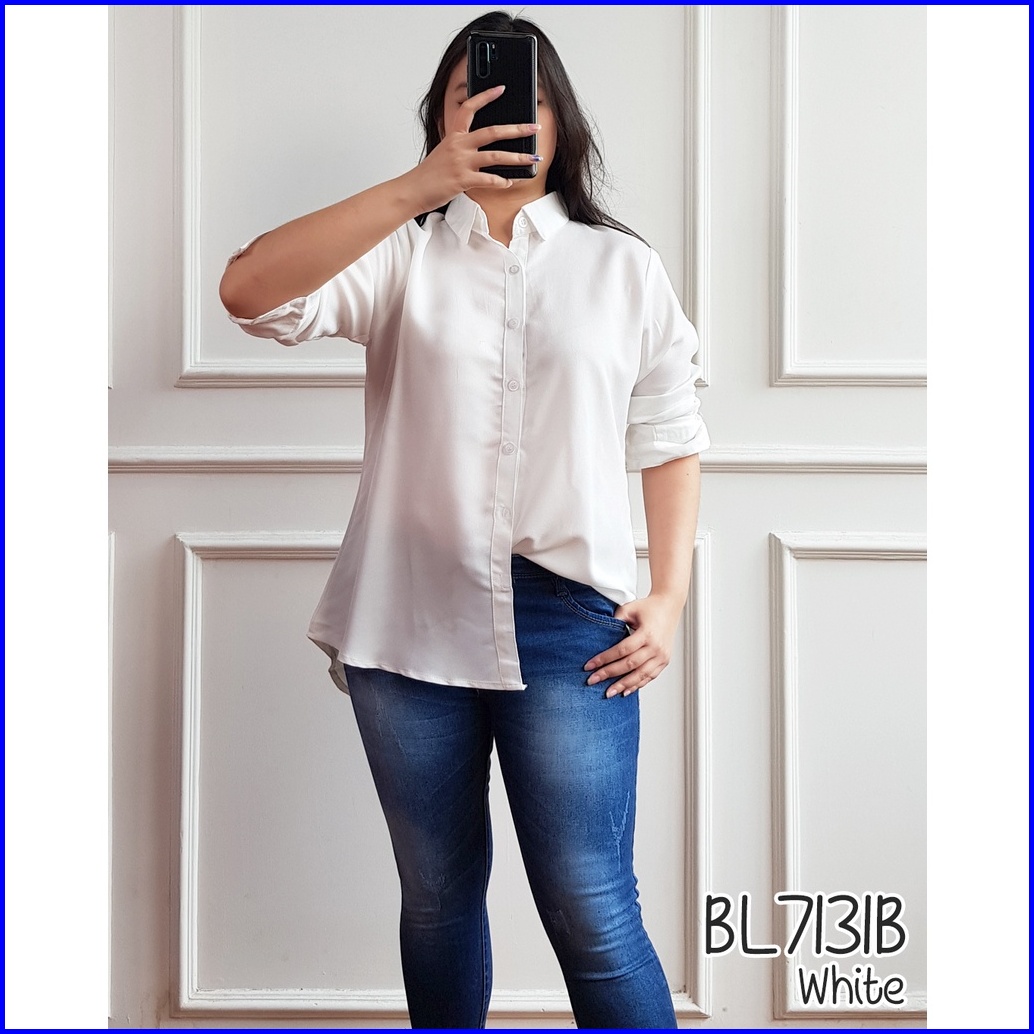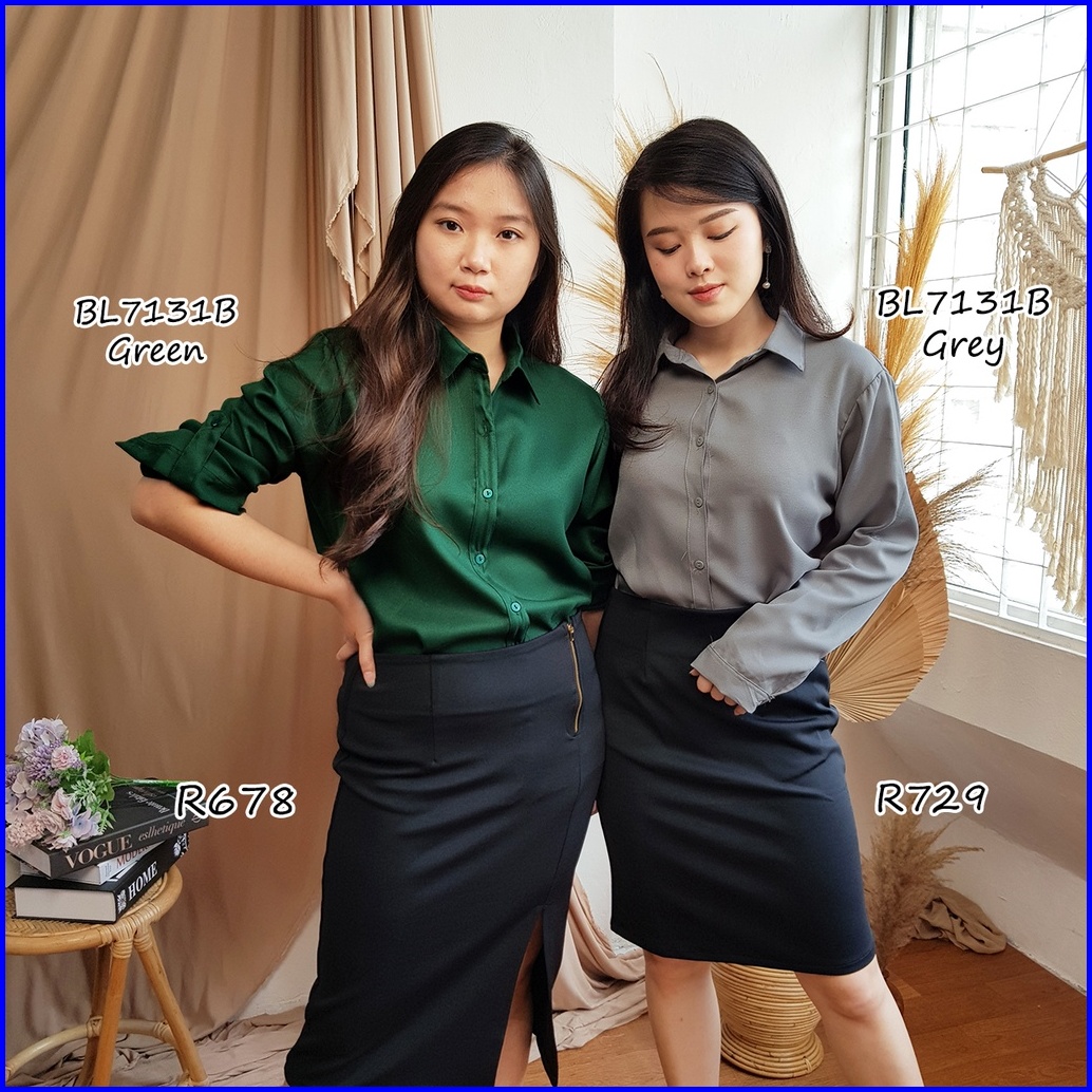 Missol Atasan Wanita Polos Lengan Panjang Formal Kemeja Warna Putih Bl7131 Bl7131b 7131