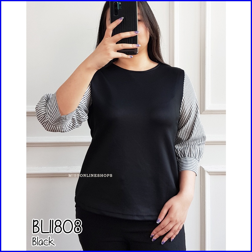 Missol Atasan Wanita Bahan Scuba Kombinasi Salur Casual Polos 11808 Bl11808
