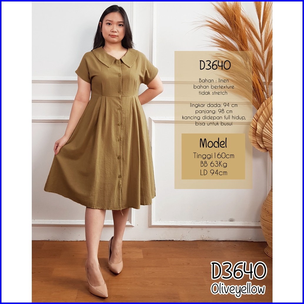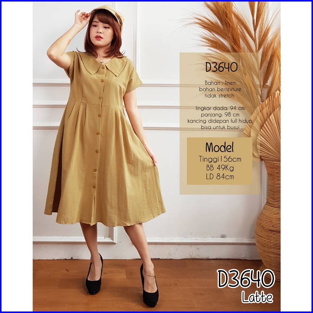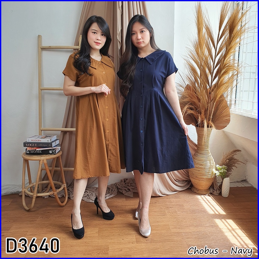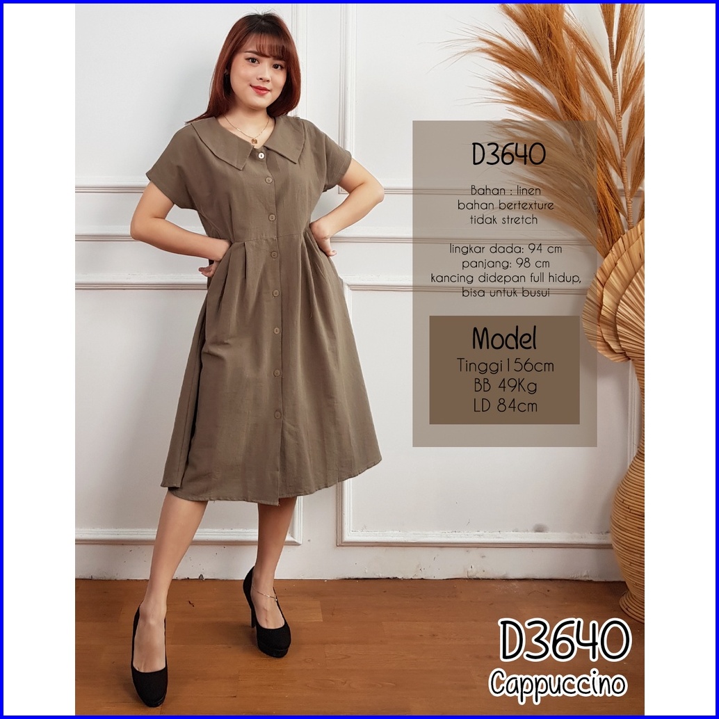 Dress Casual Wanita Linen Polos Lengan Pendek Busui Friendly D3640 3640