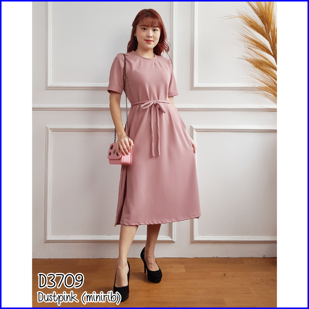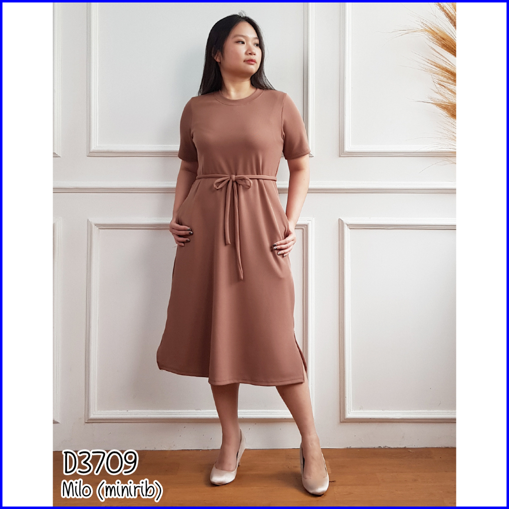 Missol Dress Knit Midi Polos Lengan Pendek Casual Simple 3709 D3709