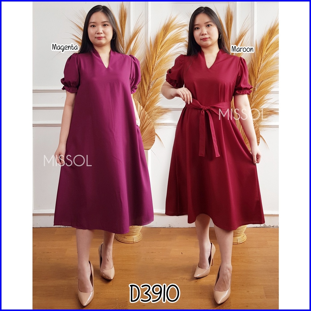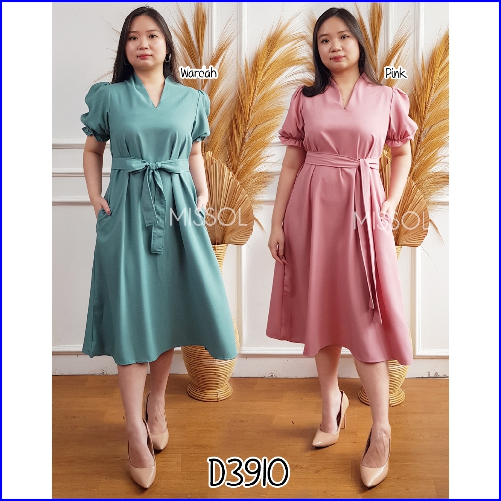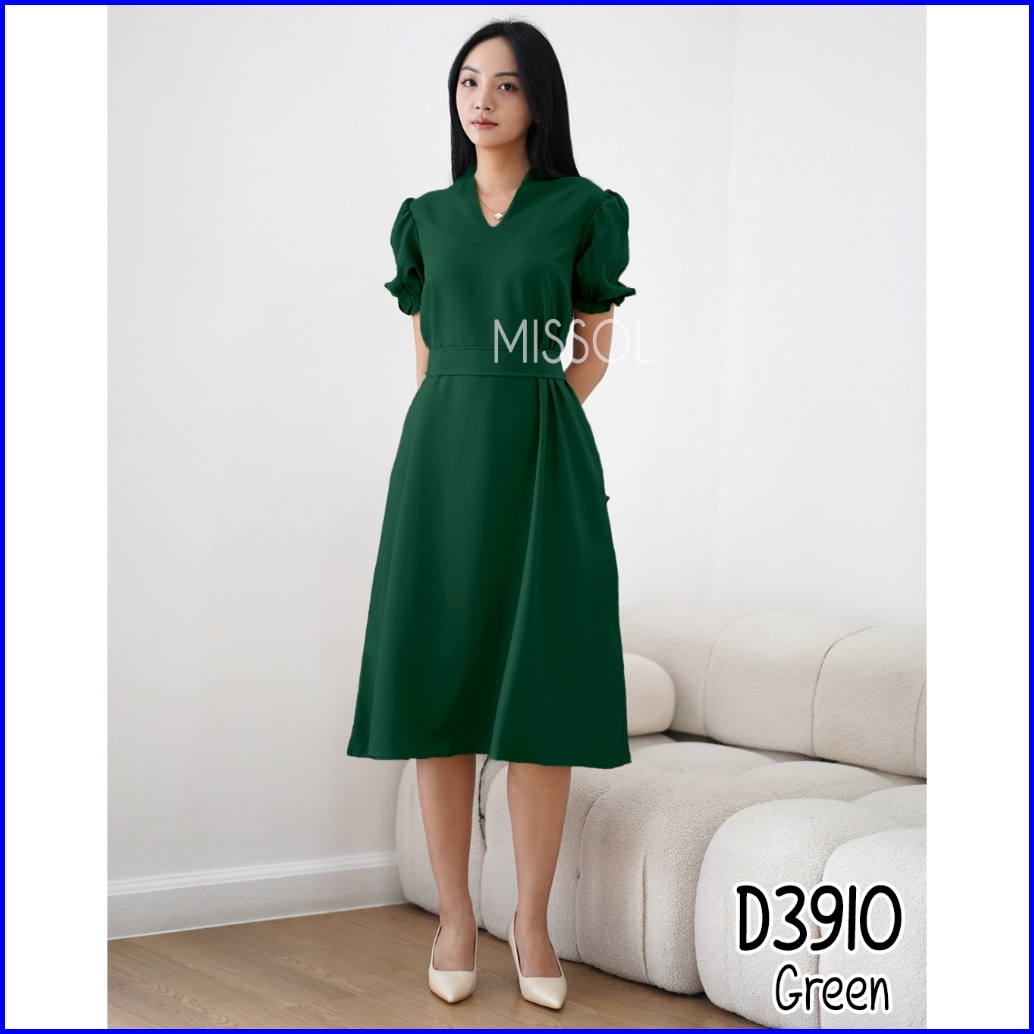 Missol Dress Basic Polos Midi Casual V Neck Lengan Pendek Polos D3910