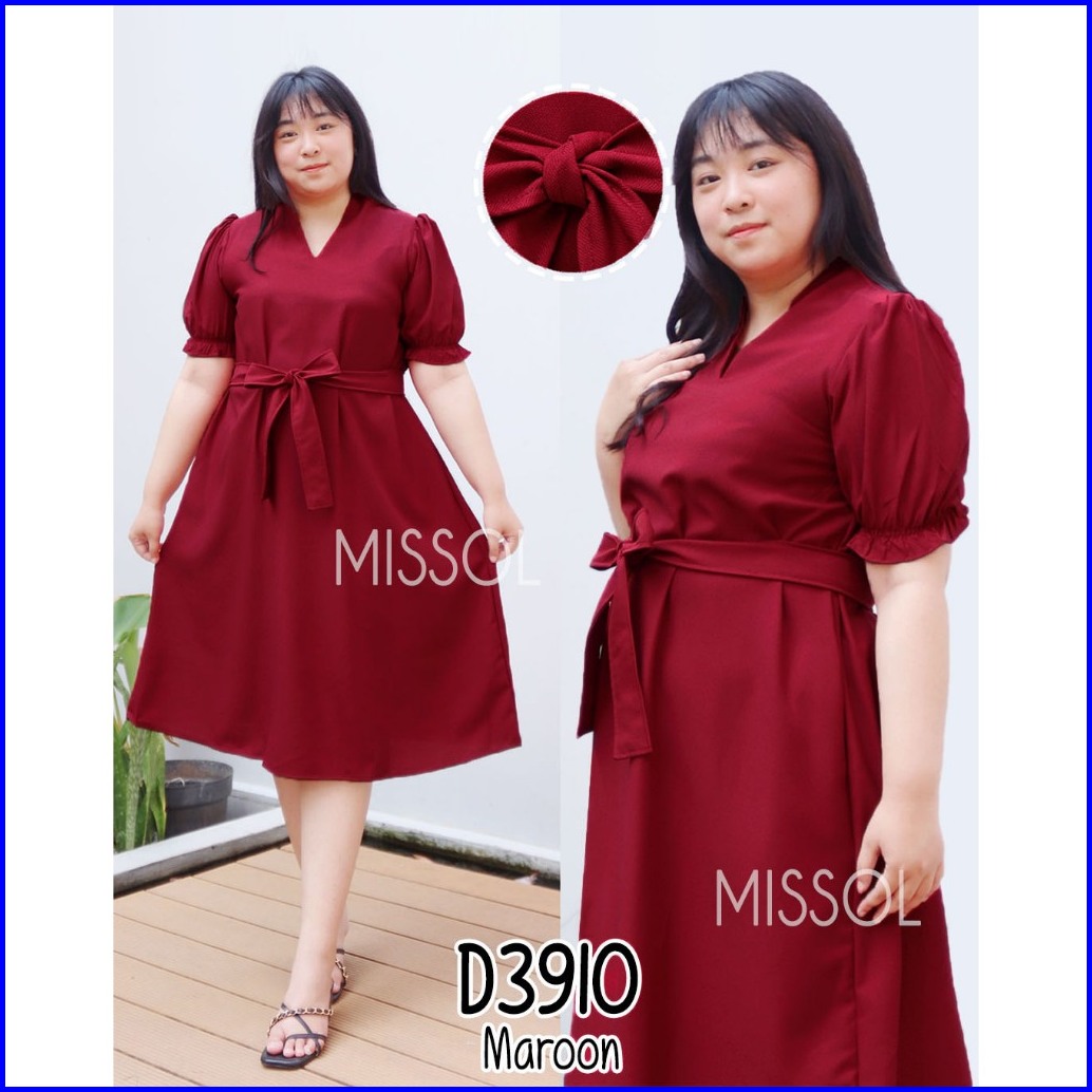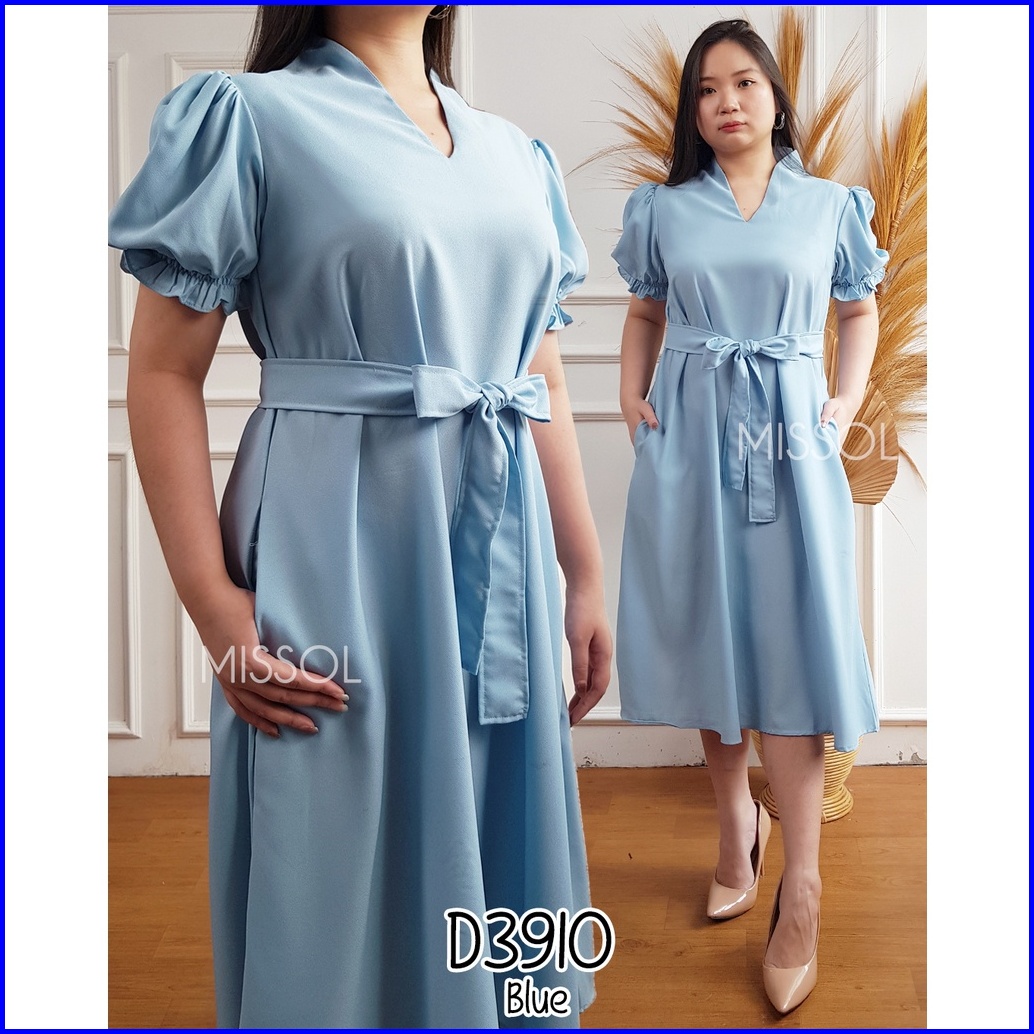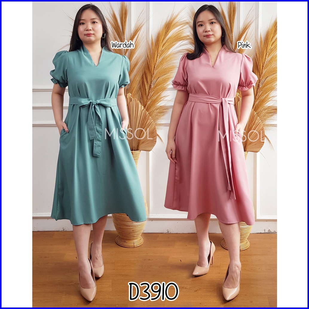 Missol Dress Basic Polos Midi Casual V Neck Lengan Pendek Polos D3910