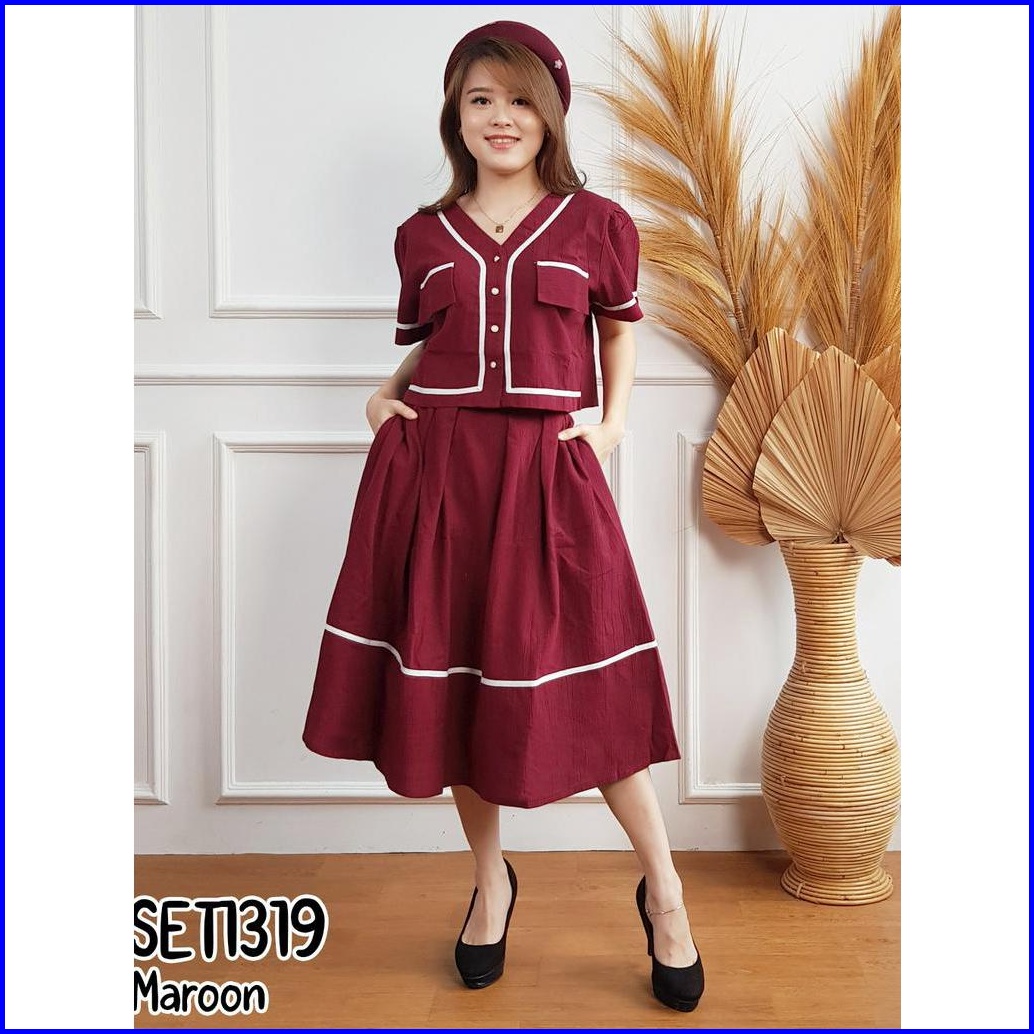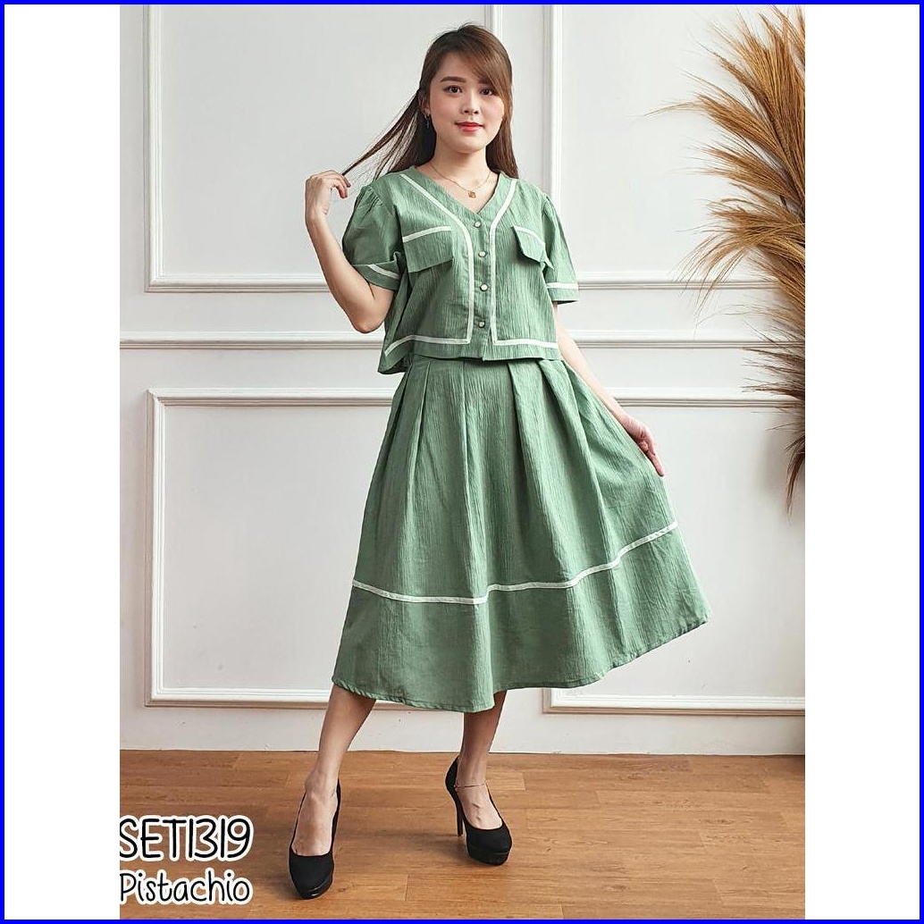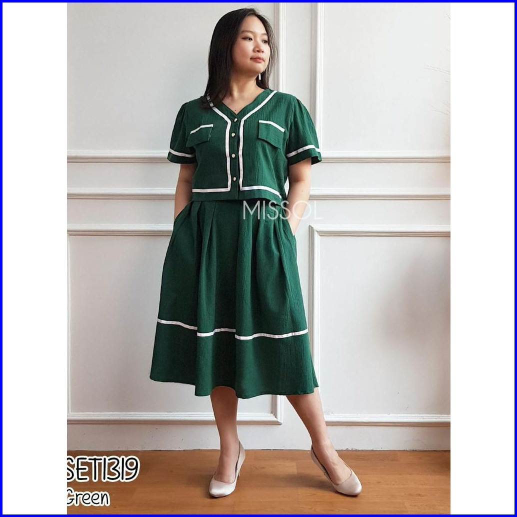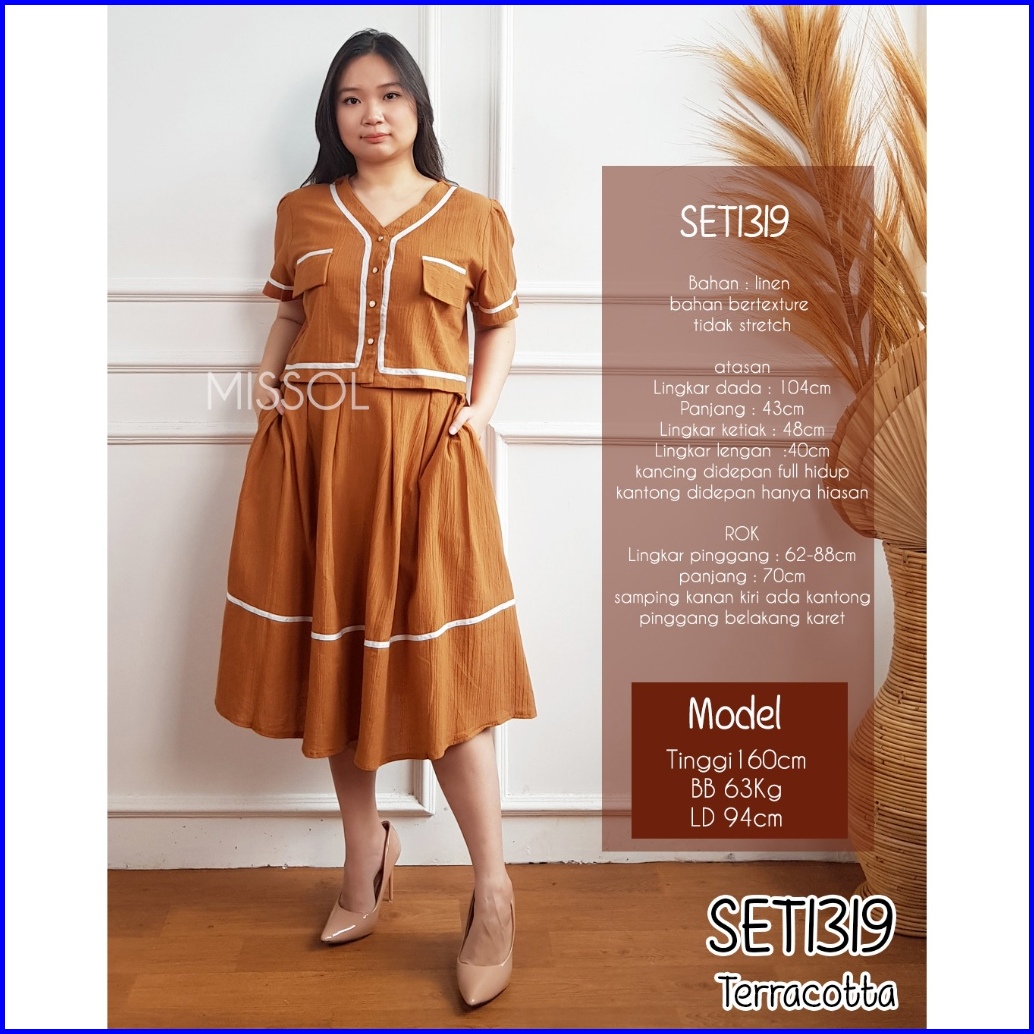 Missol One Set Wanita Atasan Dan Rok Flare Korean Style Polos Linen Set1319 Presenter Tv One