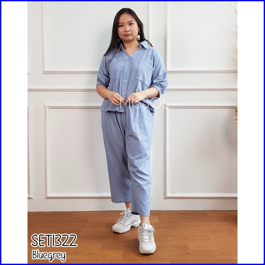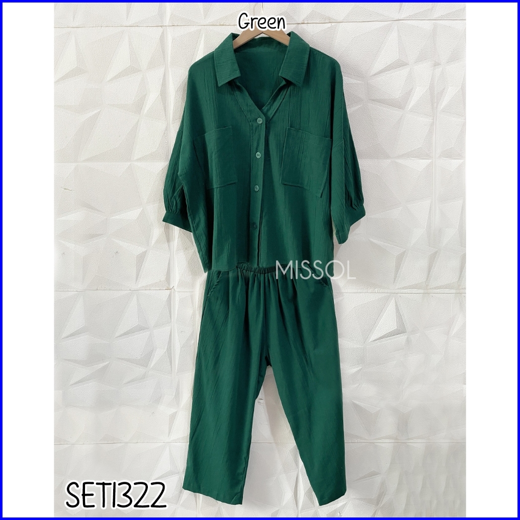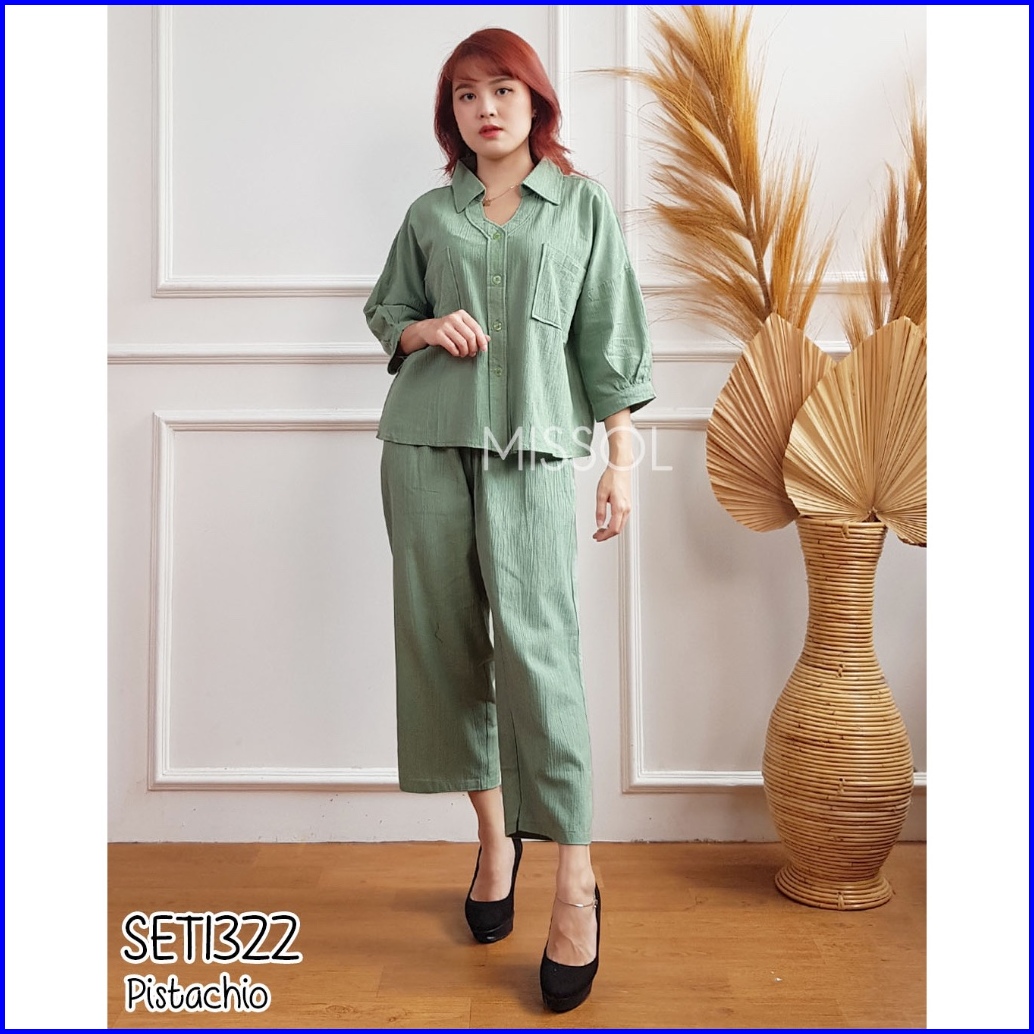 Missol One Set Wanita Linen Polos Daily Casual Set1322