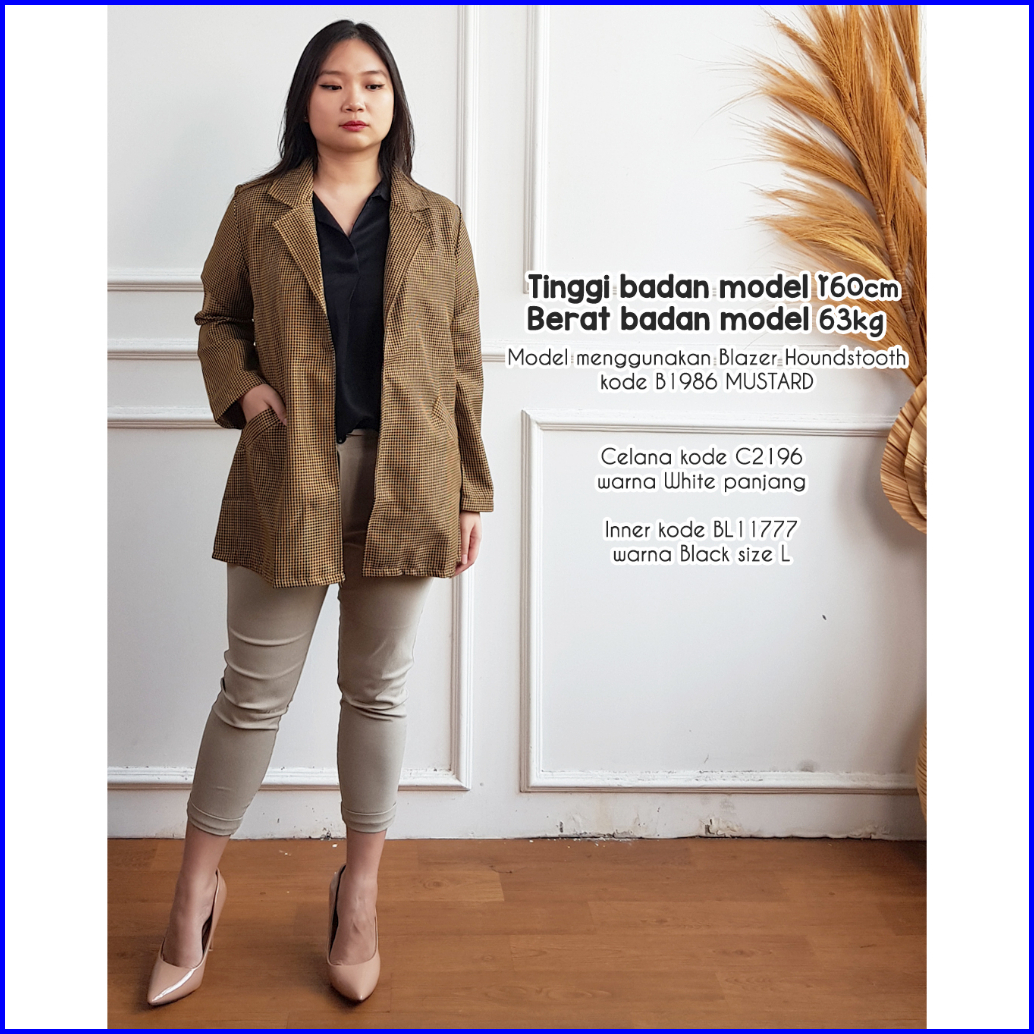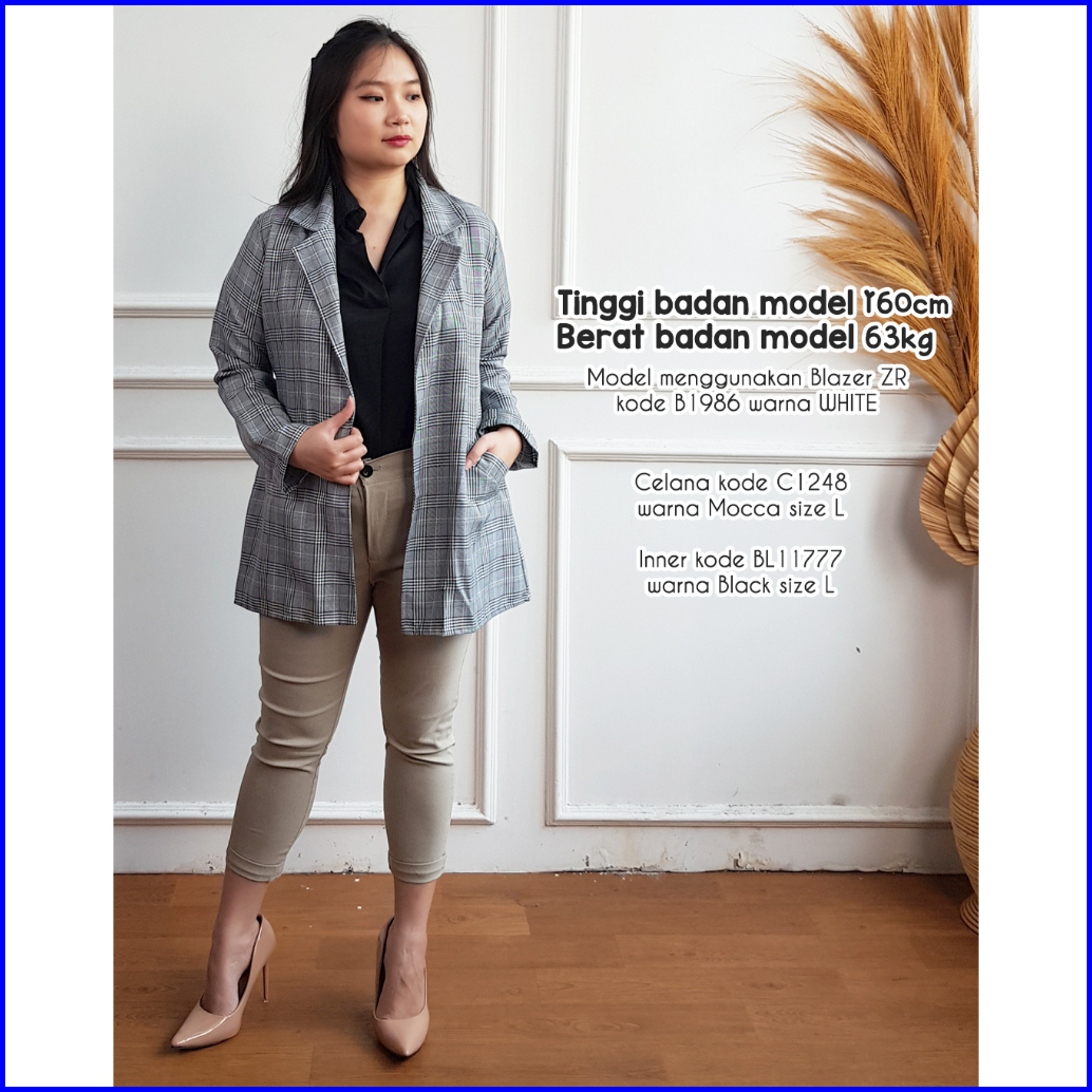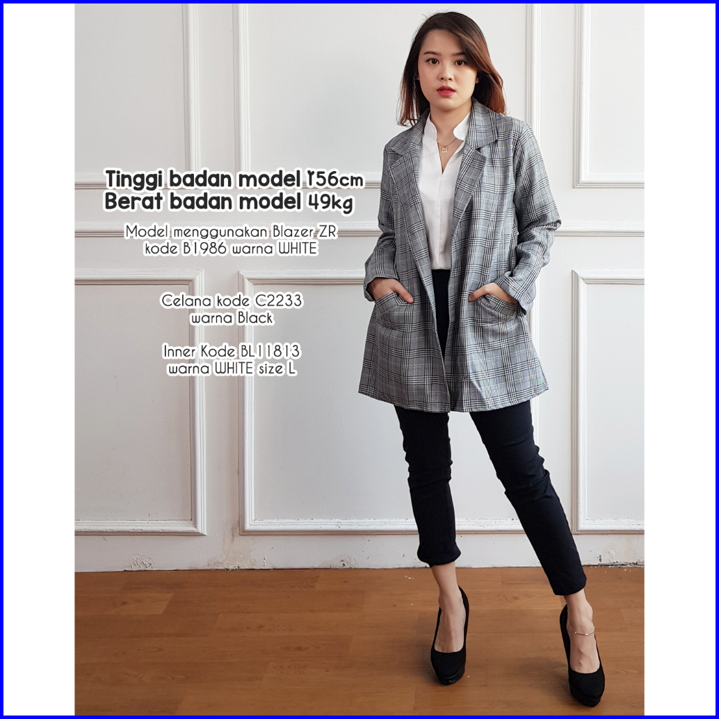 Blazer Kerja Wanita Tangan Panjang Polos Motif Tartan B1986 1986