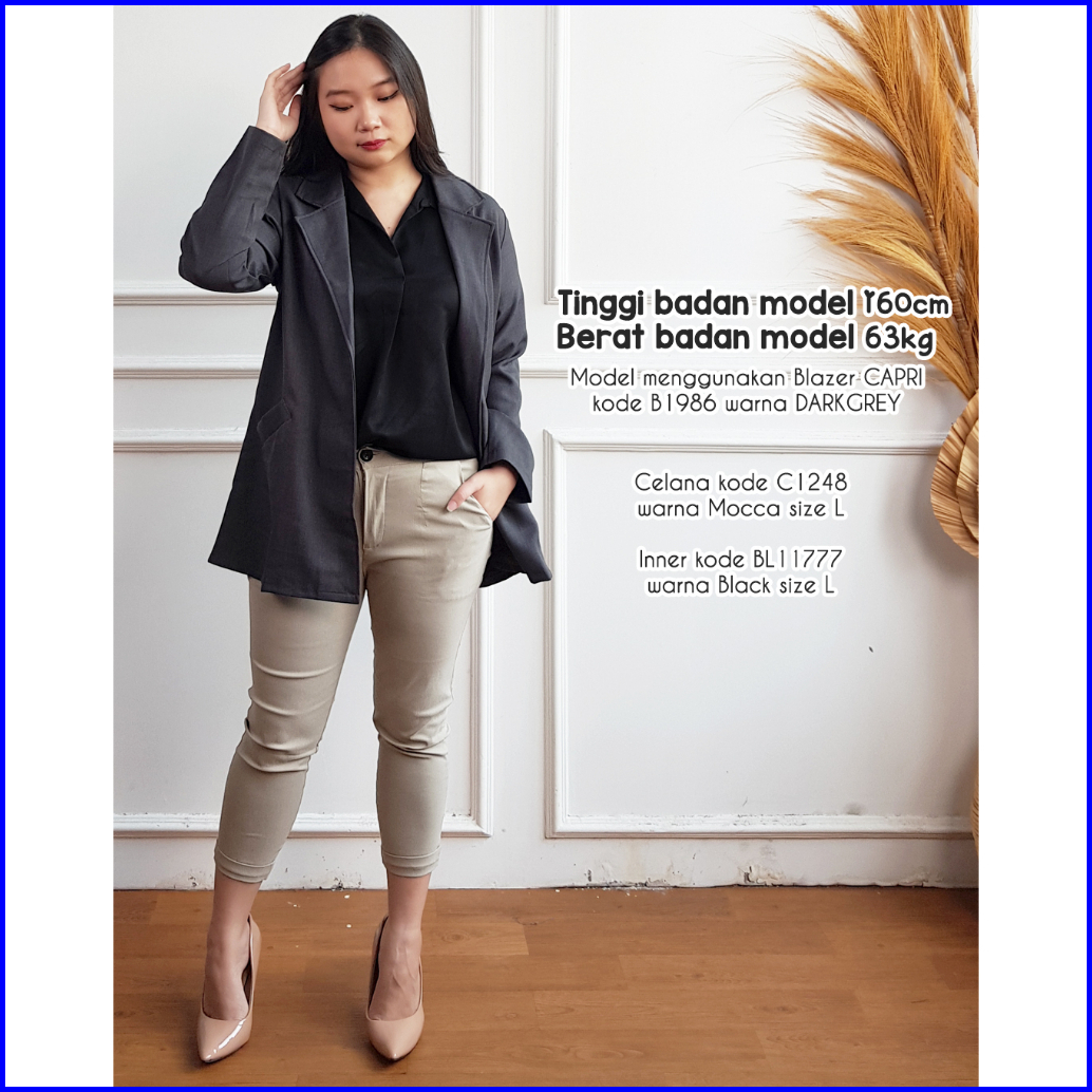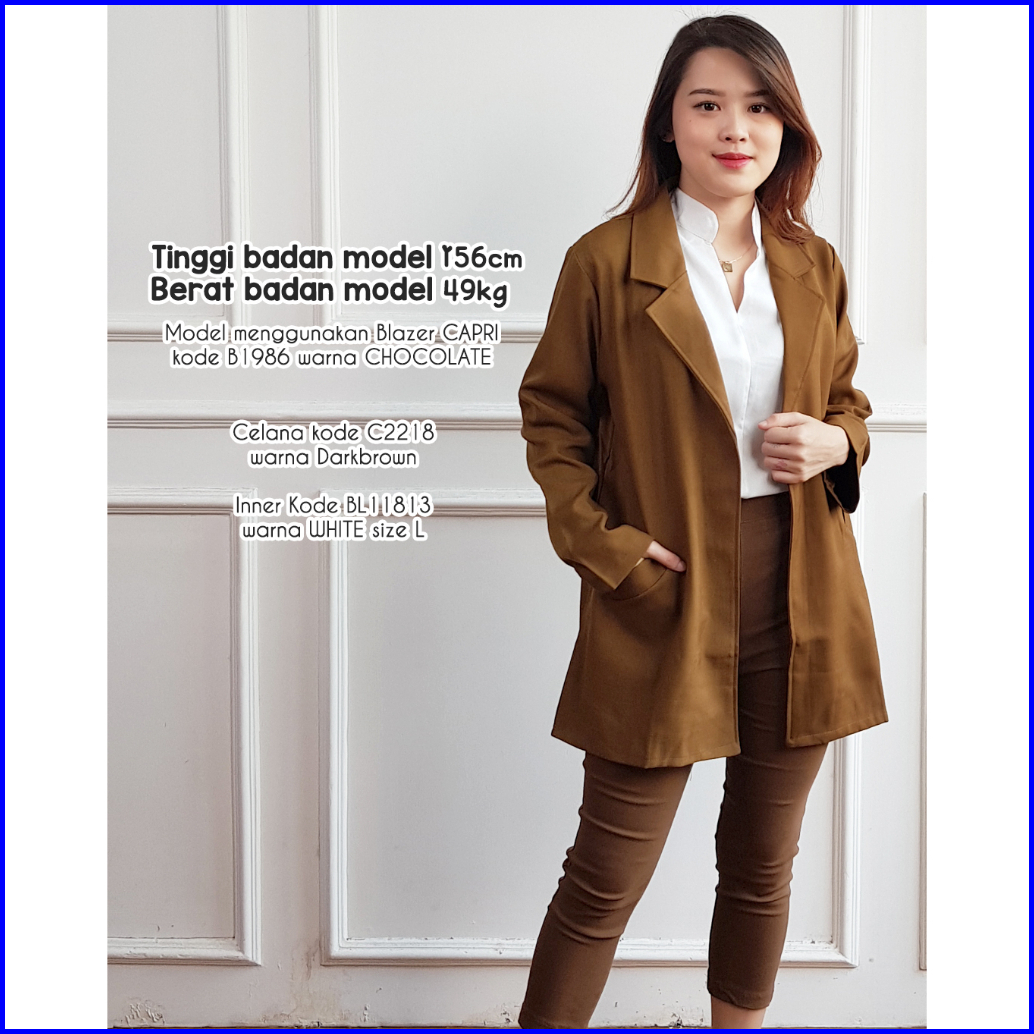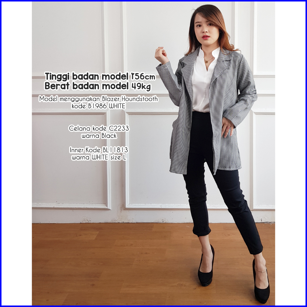 Blazer Kerja Wanita Tangan Panjang Polos Motif Tartan B1986 1986