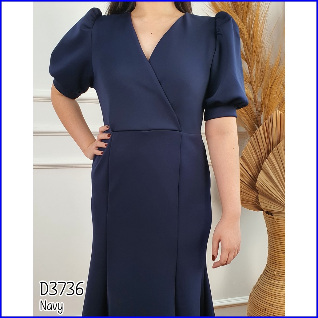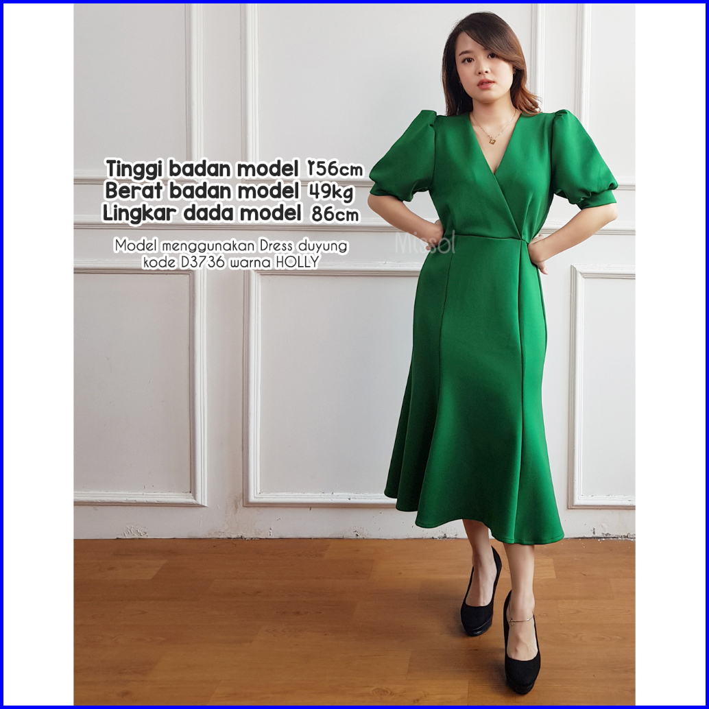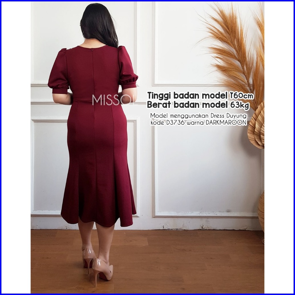 Missol Dress Kondangan Pesta Scuba Midi Lengan Balon Polos Formal D3736 Duyung Scuba Tv One