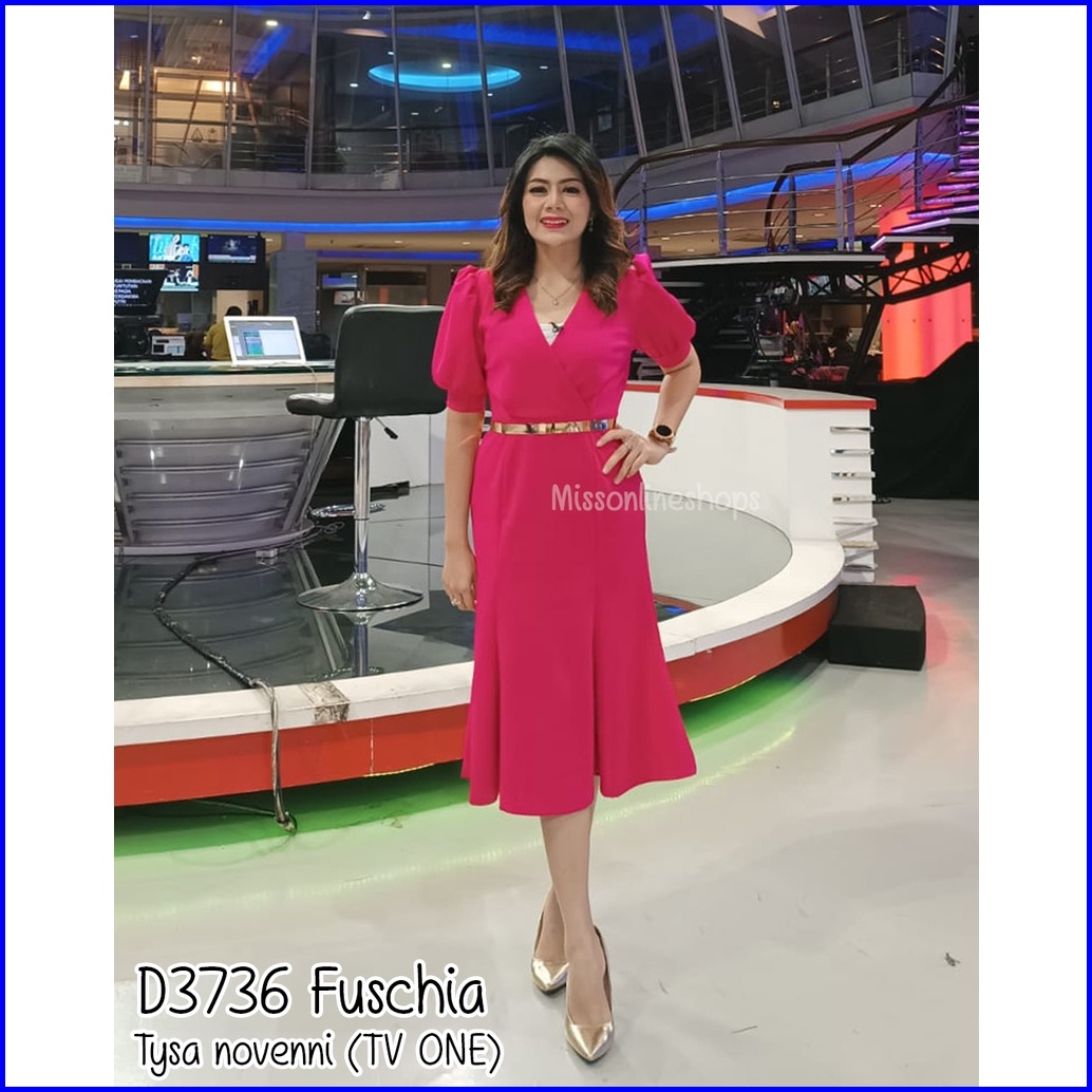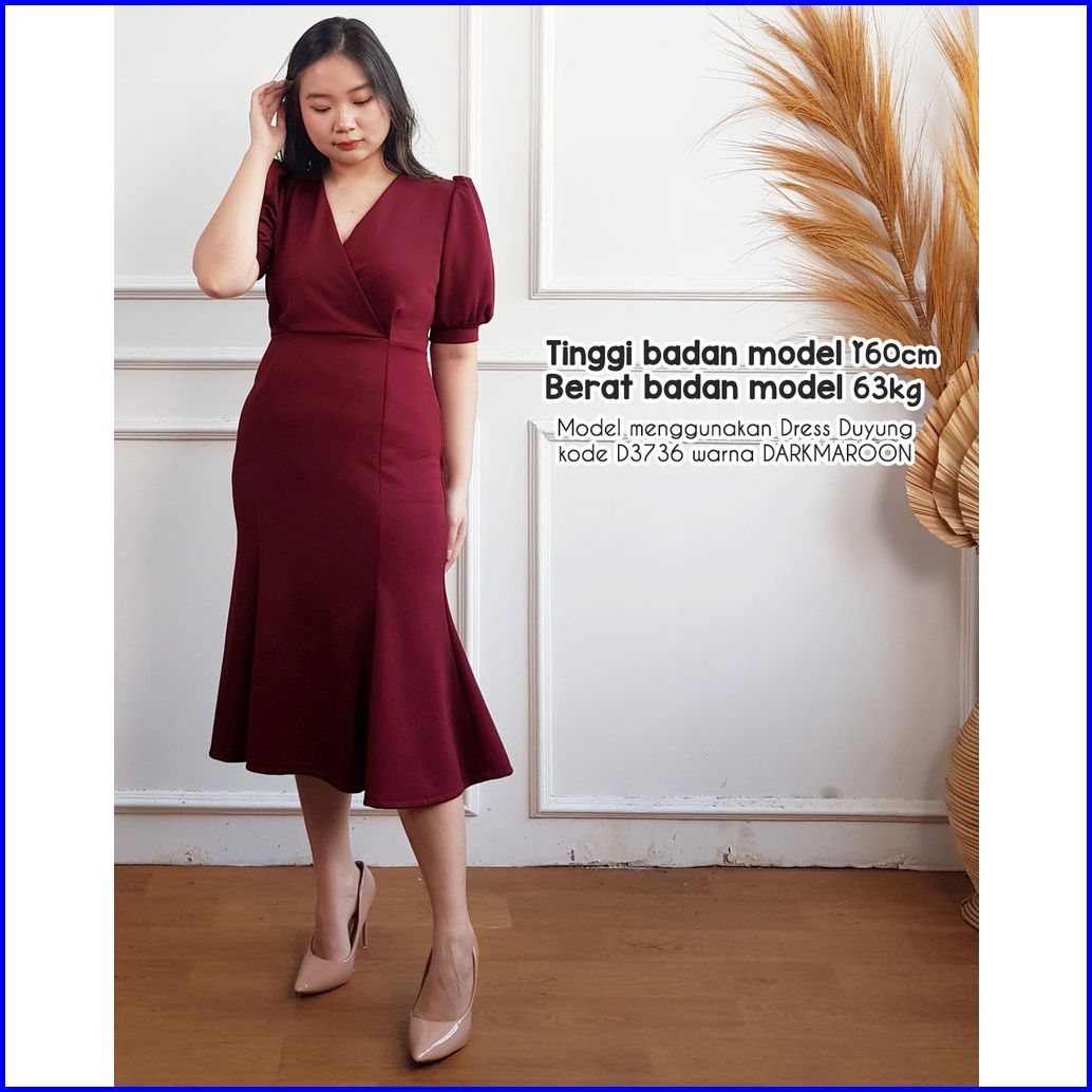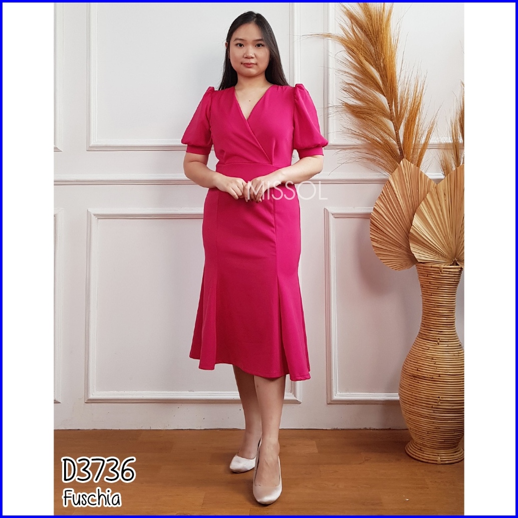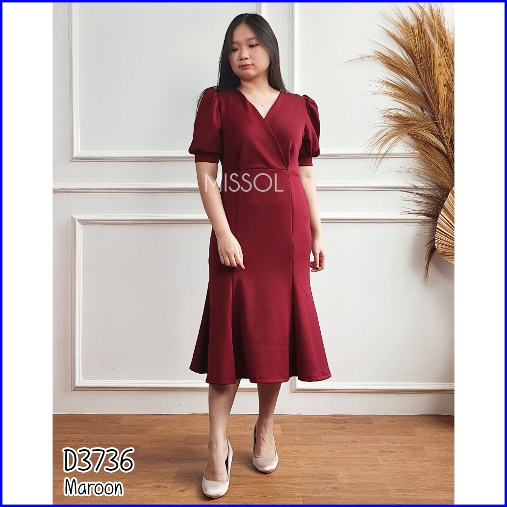 Missol Dress Kondangan Pesta Scuba Midi Lengan Balon Polos Formal D3736 Duyung Scuba Tv One