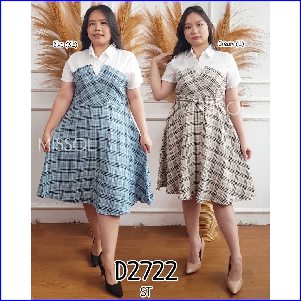 Missol Dress Lengan Pendek Kombi Motif Polos D2722k D2722 2722