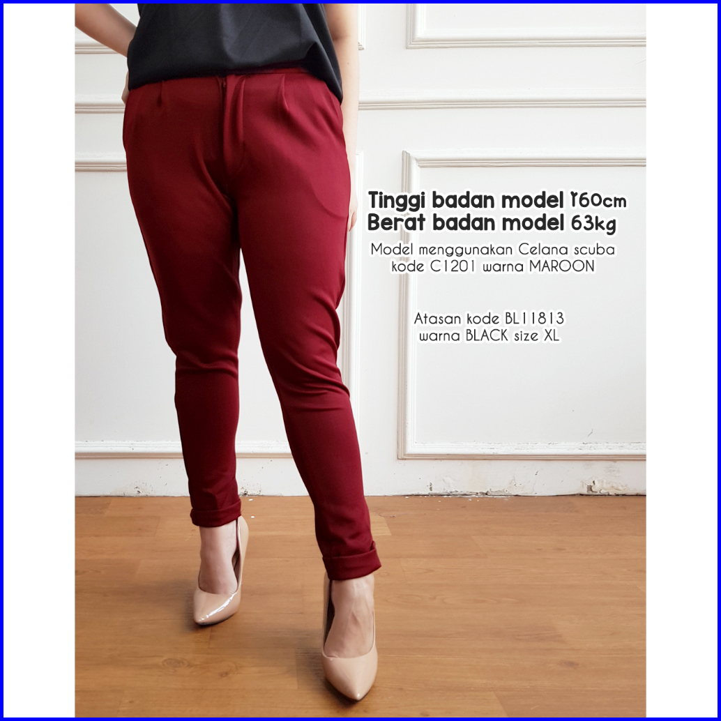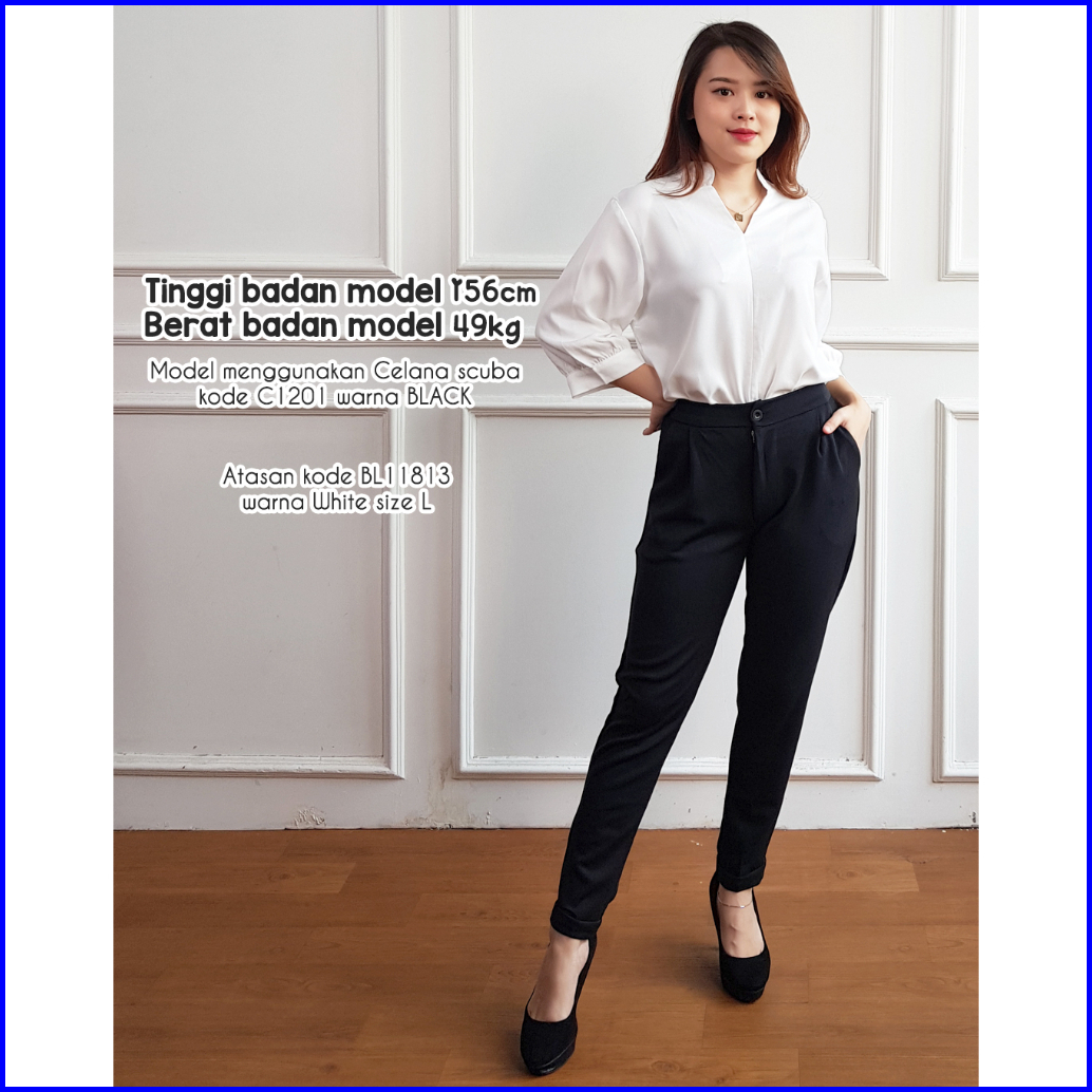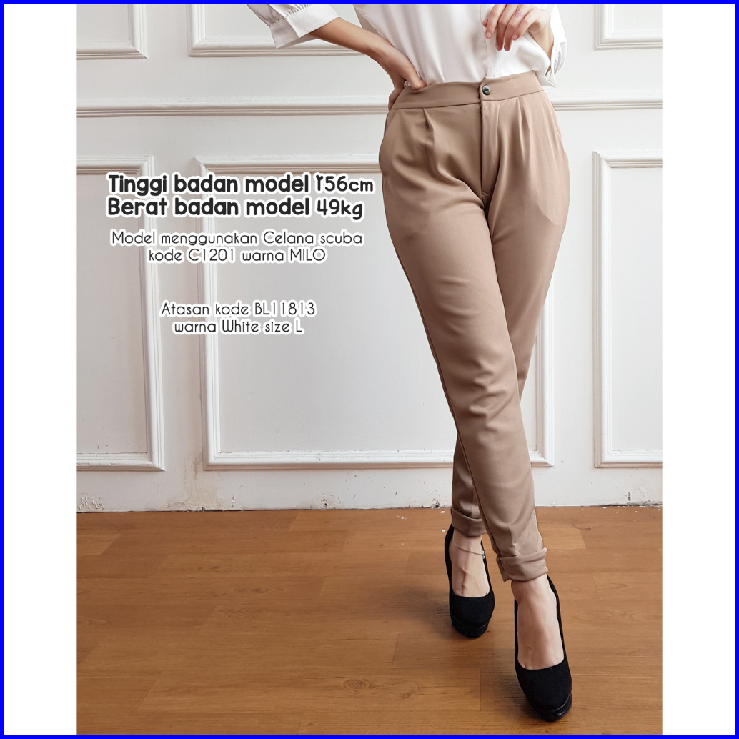 Celana Kerja Wanita Panjang Polos C1201 Celana Scuba 1201