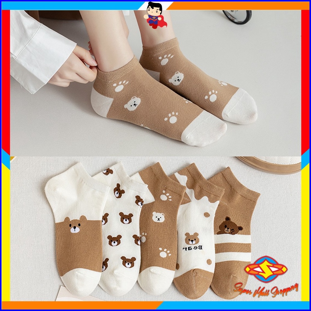 Sms Kaos Kaki Wanita Korea Motif Beruang Coklat 6579 Kaos Kaki Pendek Bear Semata Kaki Socks Karakter Korean Fashion Ank
