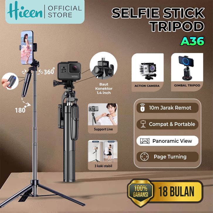 Hieen A36 Tri Bluetooth Remote Tongkat Selfie Stick Konten Video Remot Bluetooth TR05