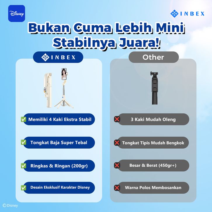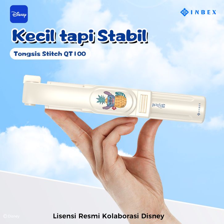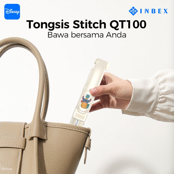K INBEX QT100 Disney Stitch Tongsis Tri Handphone Remote Bluetooth Tongsis Travel dan Konten Kreator