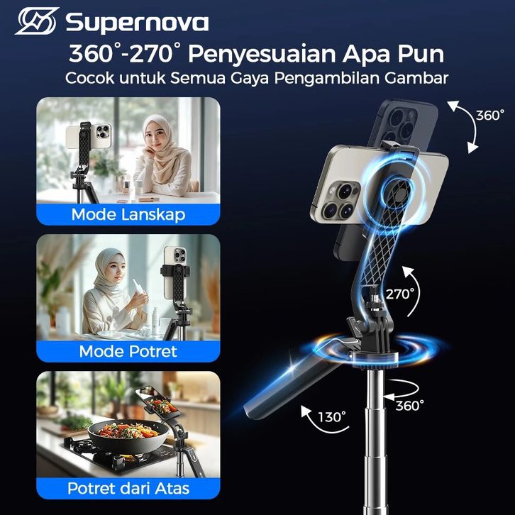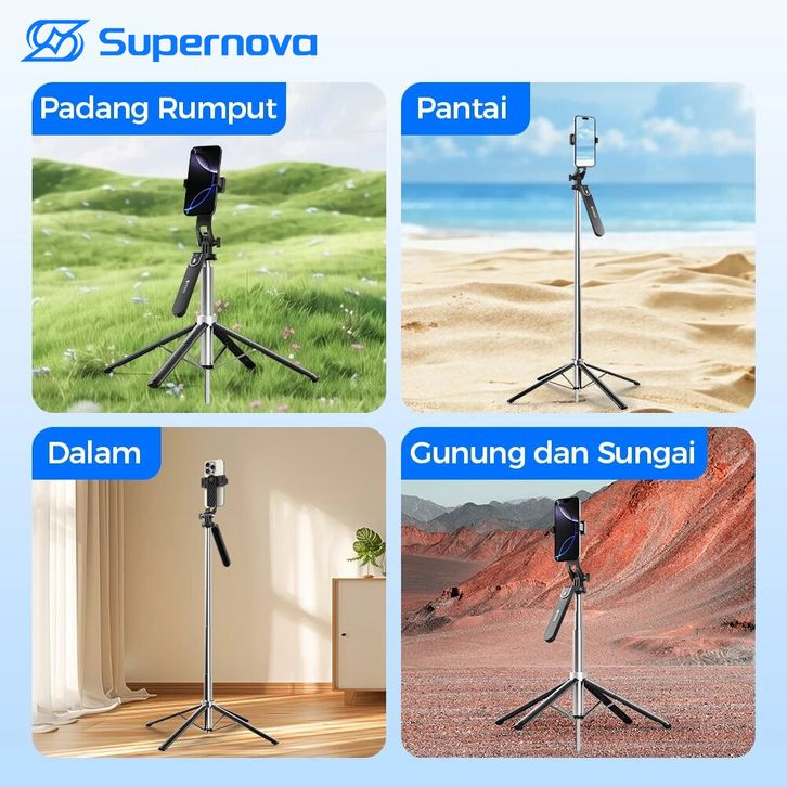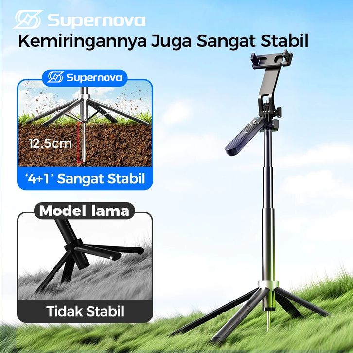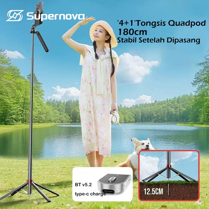 Supernova P180 '4+1' Tongsis Tri Bluetooth Quad 1.8m konten kreator Tri portable Fill light Selfie Stick Bluetooth 4in1
