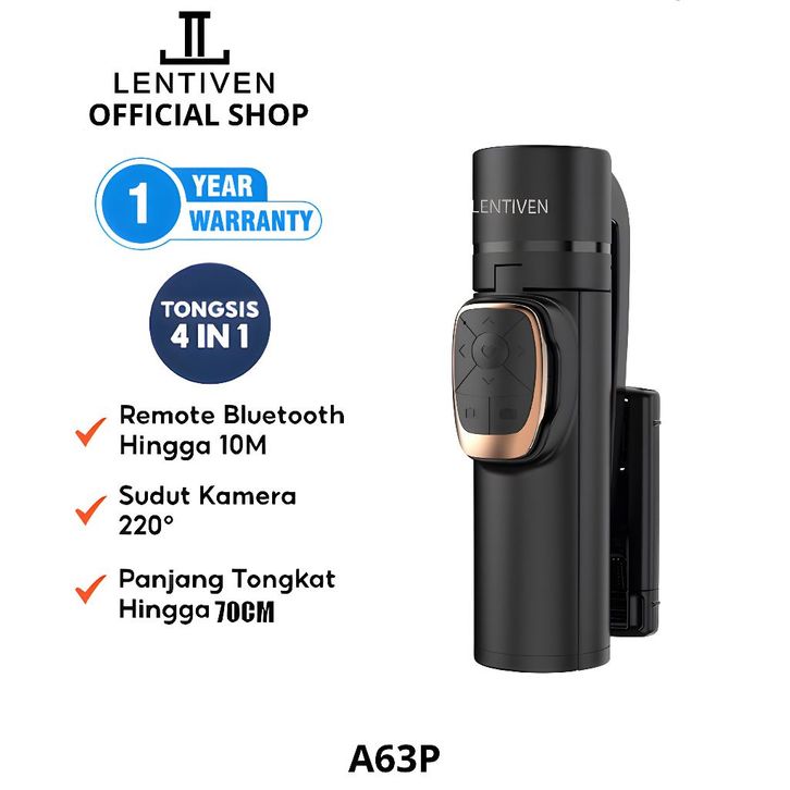 LENTIVEN Tongsis Bluetooth Selfie Stick Tri 4 In 1 Dengan Remote Control Selfie Stick Portable Flexible A36P