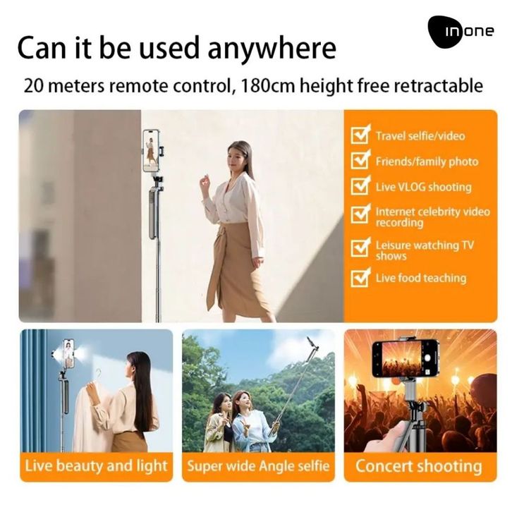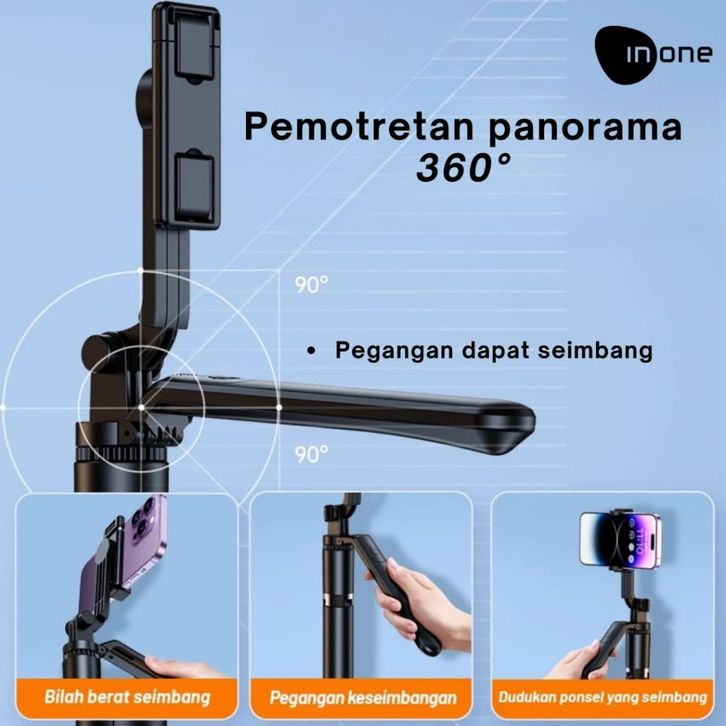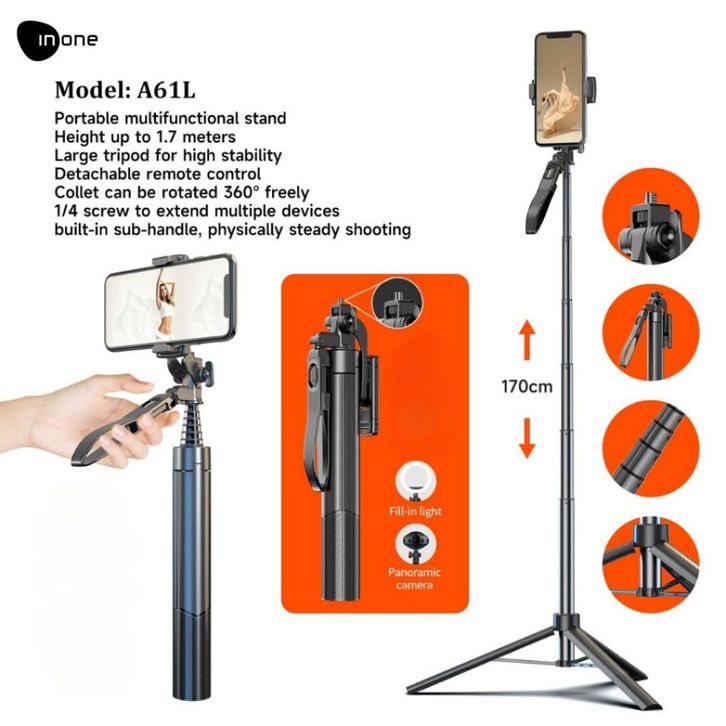 INONE Tongsis Tri A61L / R16 170CM Remote Bluetooth Selfie Stick Hand stabilizer