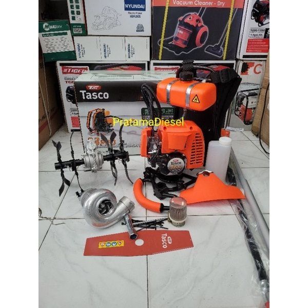 Paket(3in)Mesin potong rumput TASCO 2tak+Cultivator cakar tanah+WP10 siap pakai