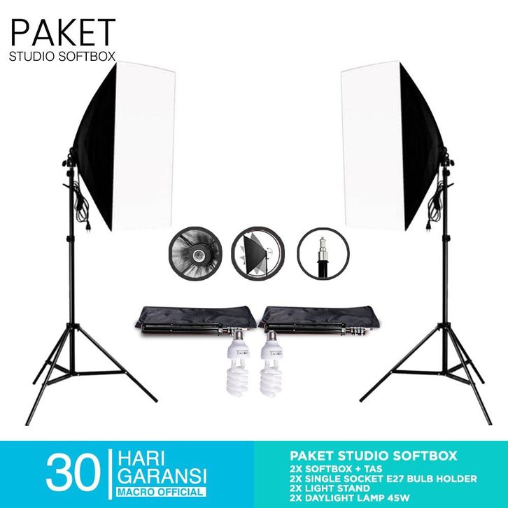 1 Set Photo Studio E27 Single Lamp Holder with Softbox 50x70cm + Stand + Lampu