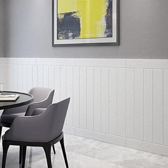 wallpaper dinding sticker foam 3D motif kayu - krem 3mm