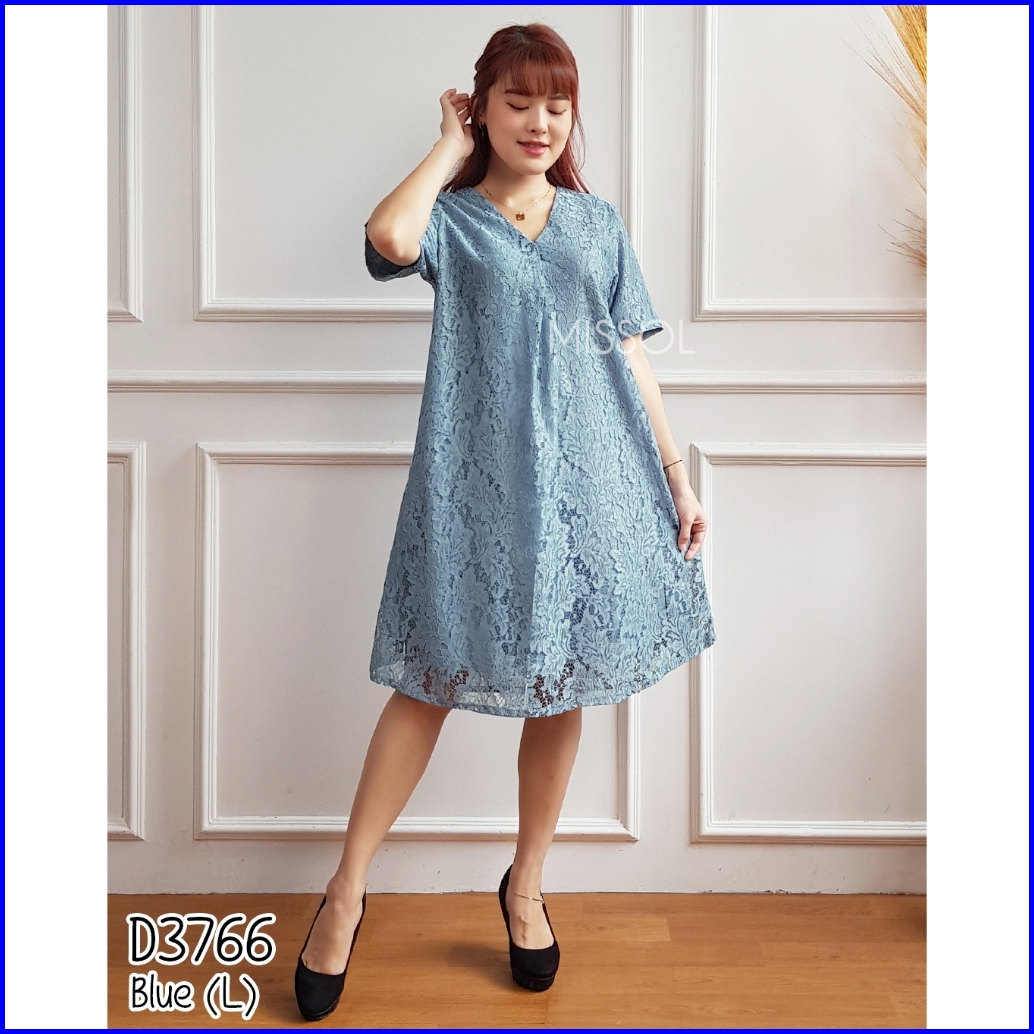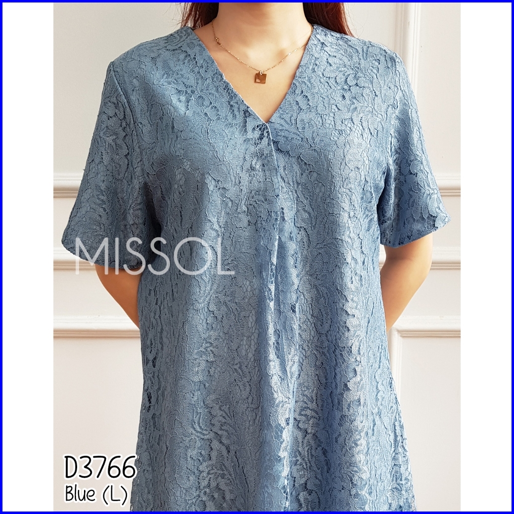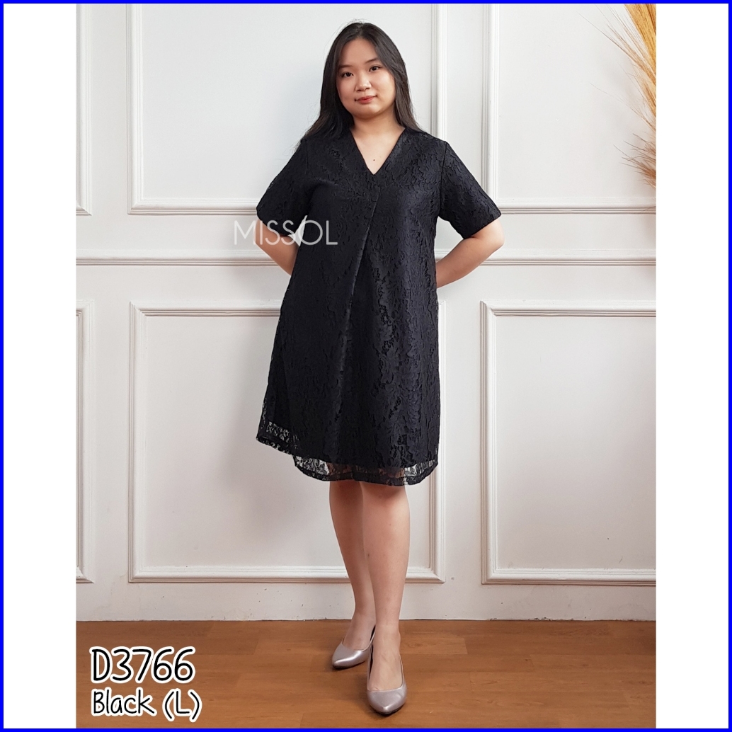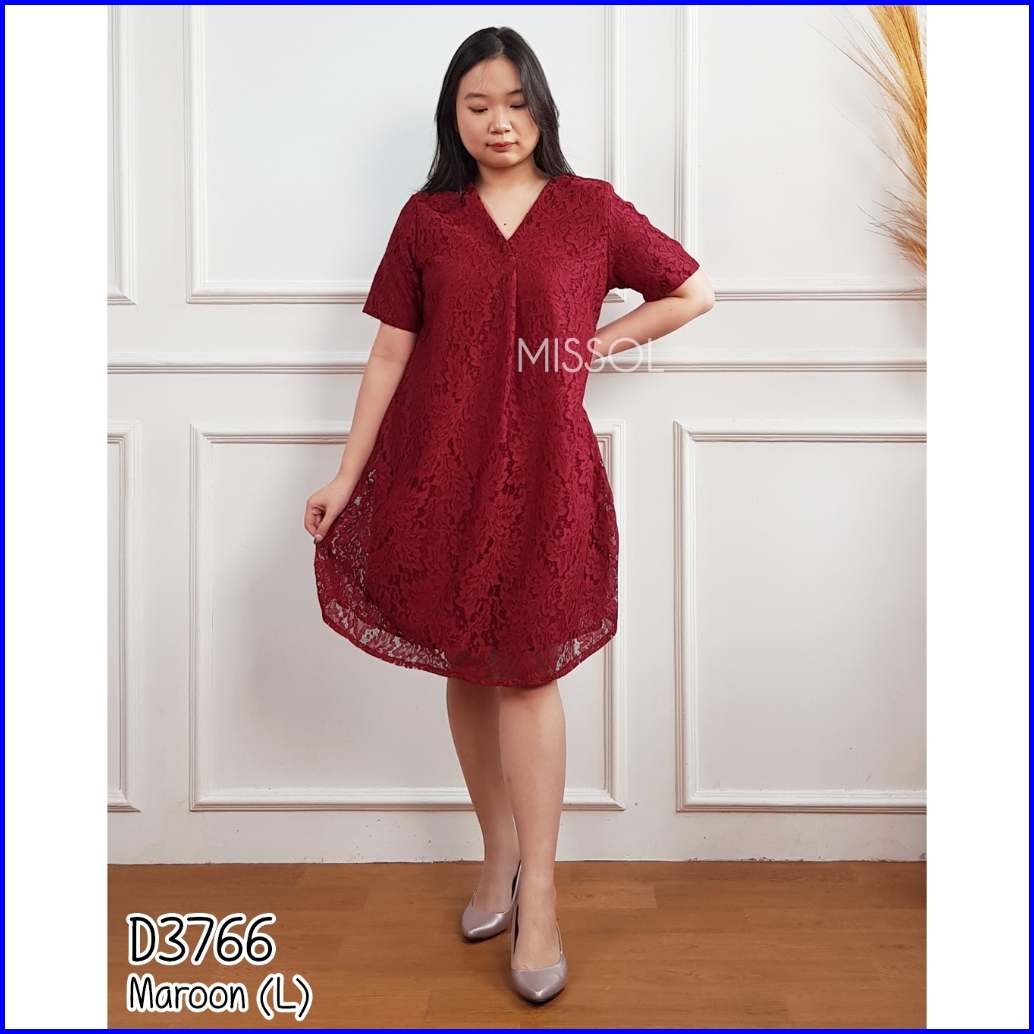 Missol Dress Brukat Midi Casual Basic Wear V Neck Big Size D3766
