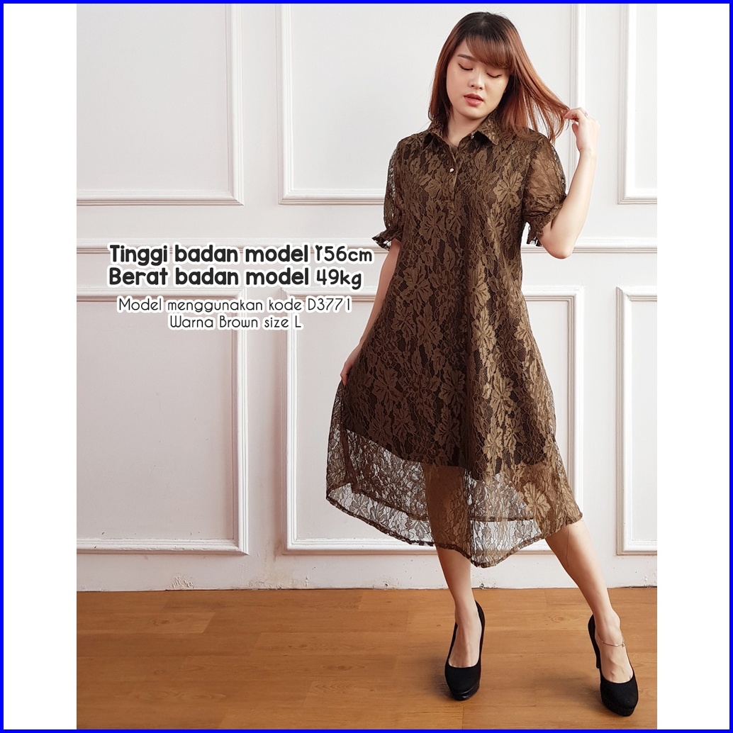 Missol Dress Brukat Midi Lengan Pendek Casual Party Dress D3771 Dress Wanita Gereja