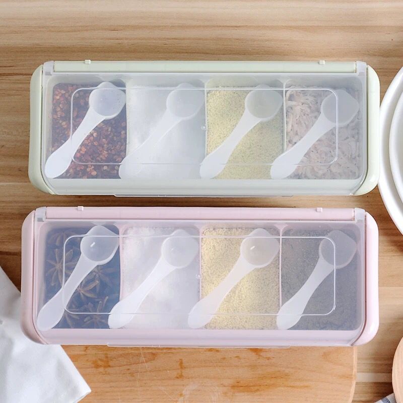 Rak Kotak Tempat Bumbu Dapur 4 Sekat Rak Bumbu 4in1 Wadah Bumbu Dapur