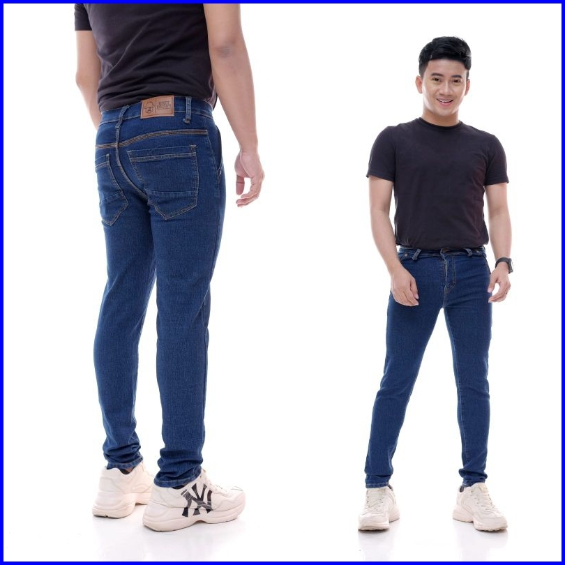 Celana Hitam Terlaris Original Ori Pria Jeans Panjang Pensil Skinny Semi Slim Fit Cowok Cowo Pria Bahan Denim Stretch Te