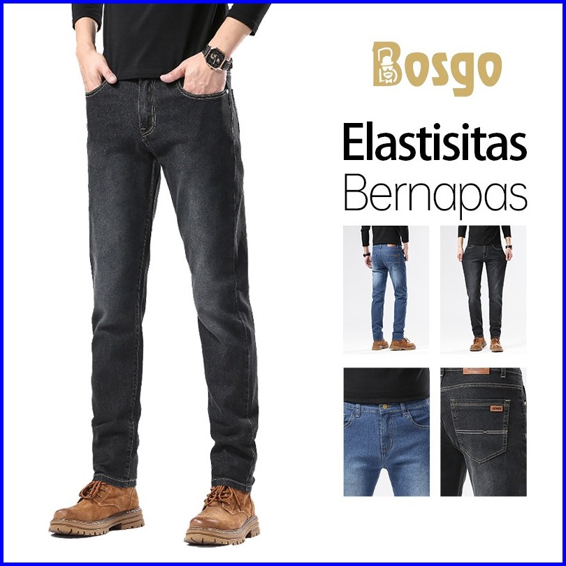 Bosgo Korean Style Celana Skinny Jeans Pria Hitam Pensil Panjang