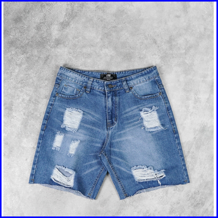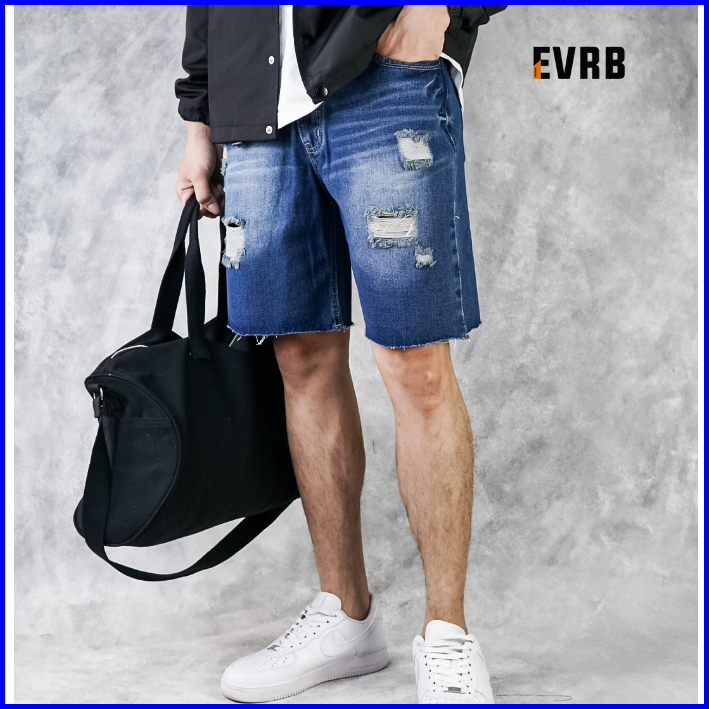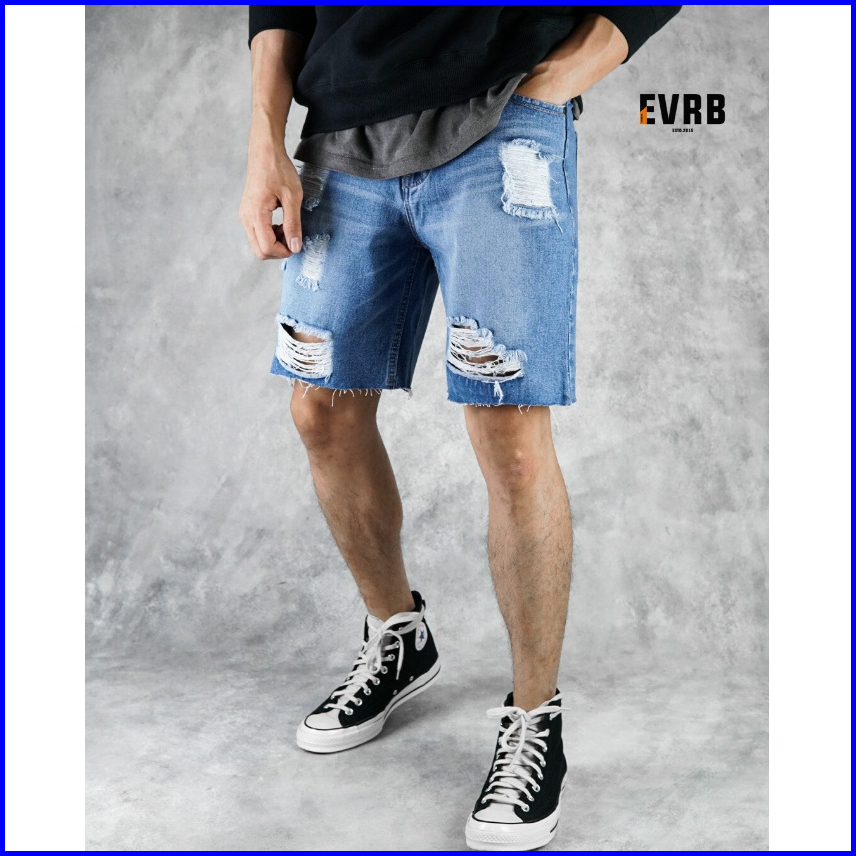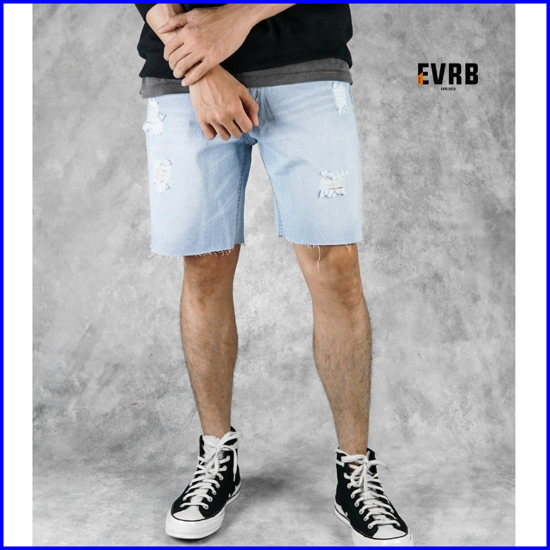 Evrb - Denim Jeans Short Wash Celana Pendek Denim Ripped Robek