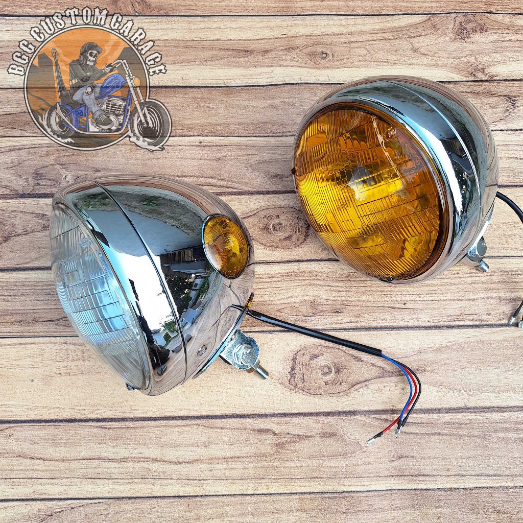 Headlamp 7 inch Marcow . Lampu Motor Custom Universal Import . British . Tracker .scrambler