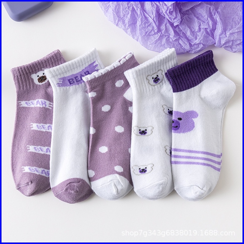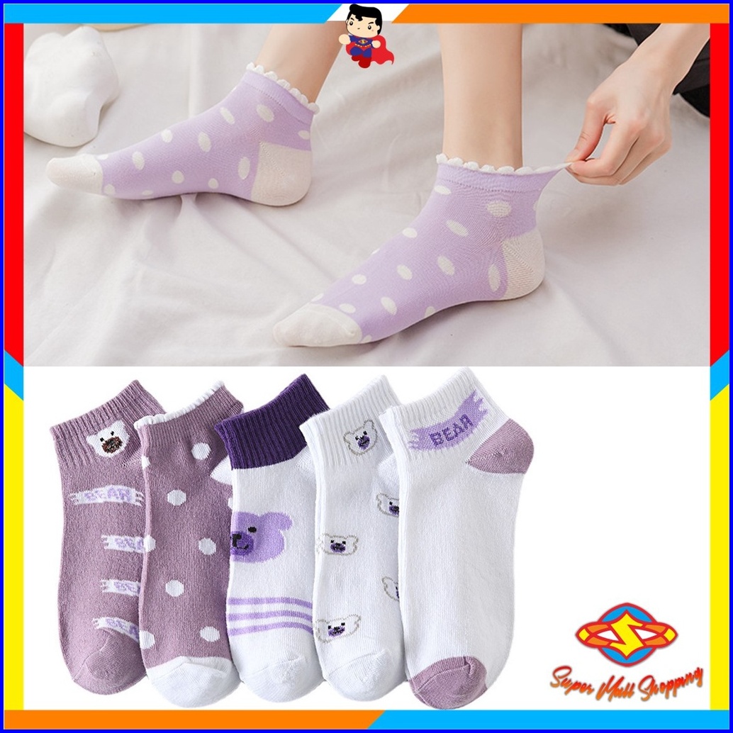Sms Kaos Kaki Wanita Motif Beruang Ungu 6584 Kaos Kaki Pendek Fashion Korean Unisex Semata Kaki Purple Bear Socks Import