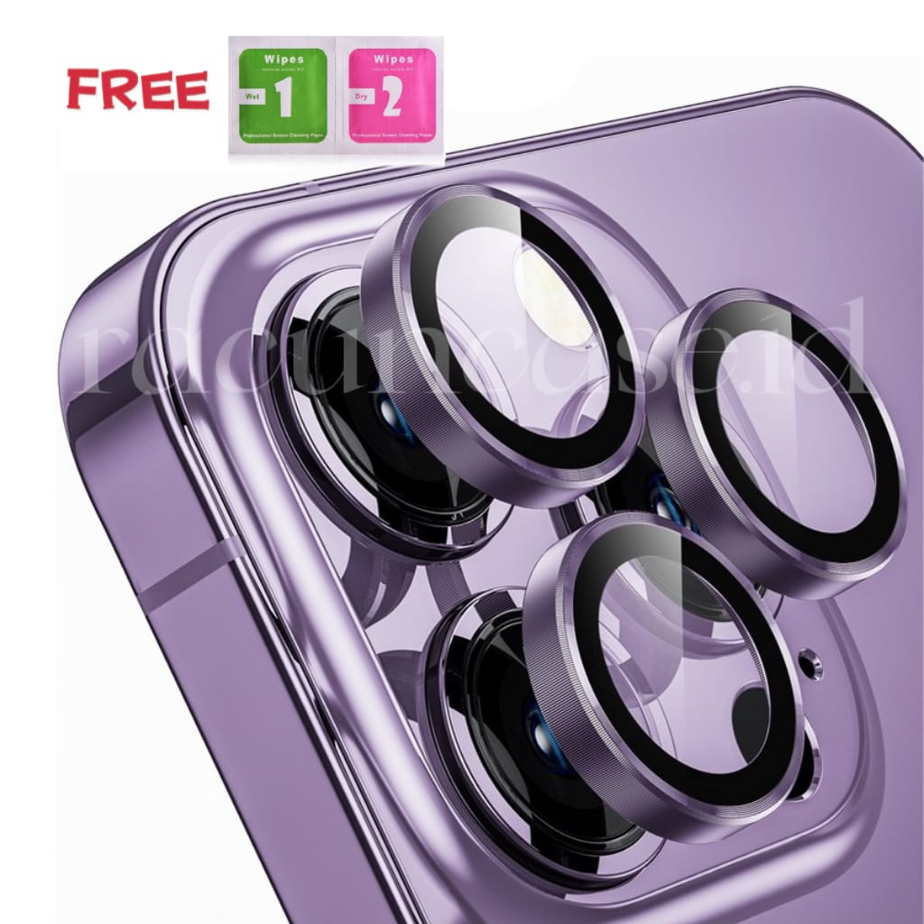 (HARGA SUDAH 1 SET SESUAI TIPE) Metal Ring Camera Lens Protector IPHONE 11 12 13 14 MINI PLUS PRO MAX Tempered Glass Pel